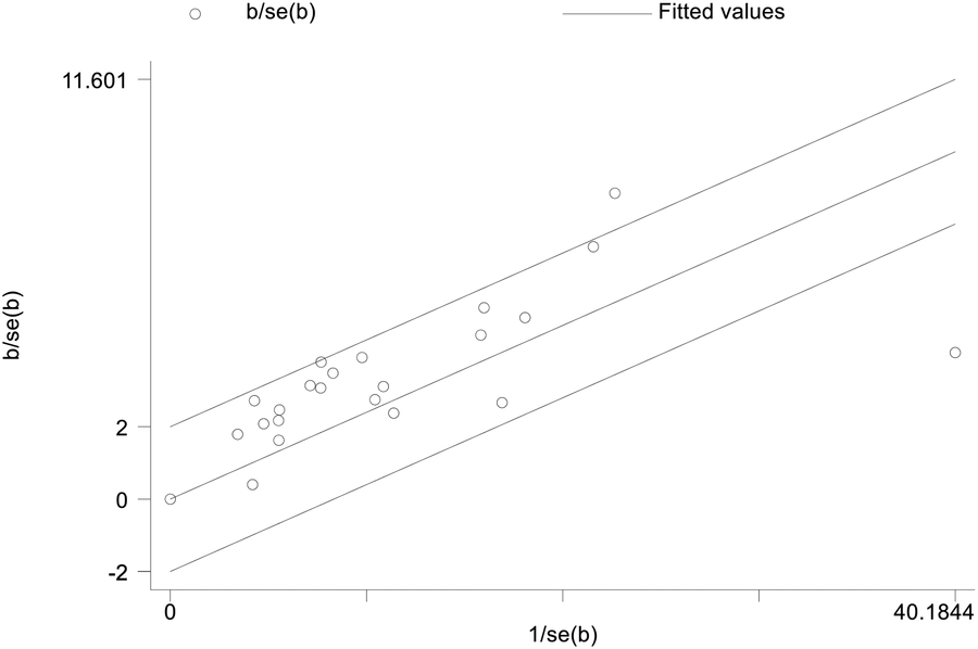 Galbraith plot of the association between TyG index and the risk of hypertension.