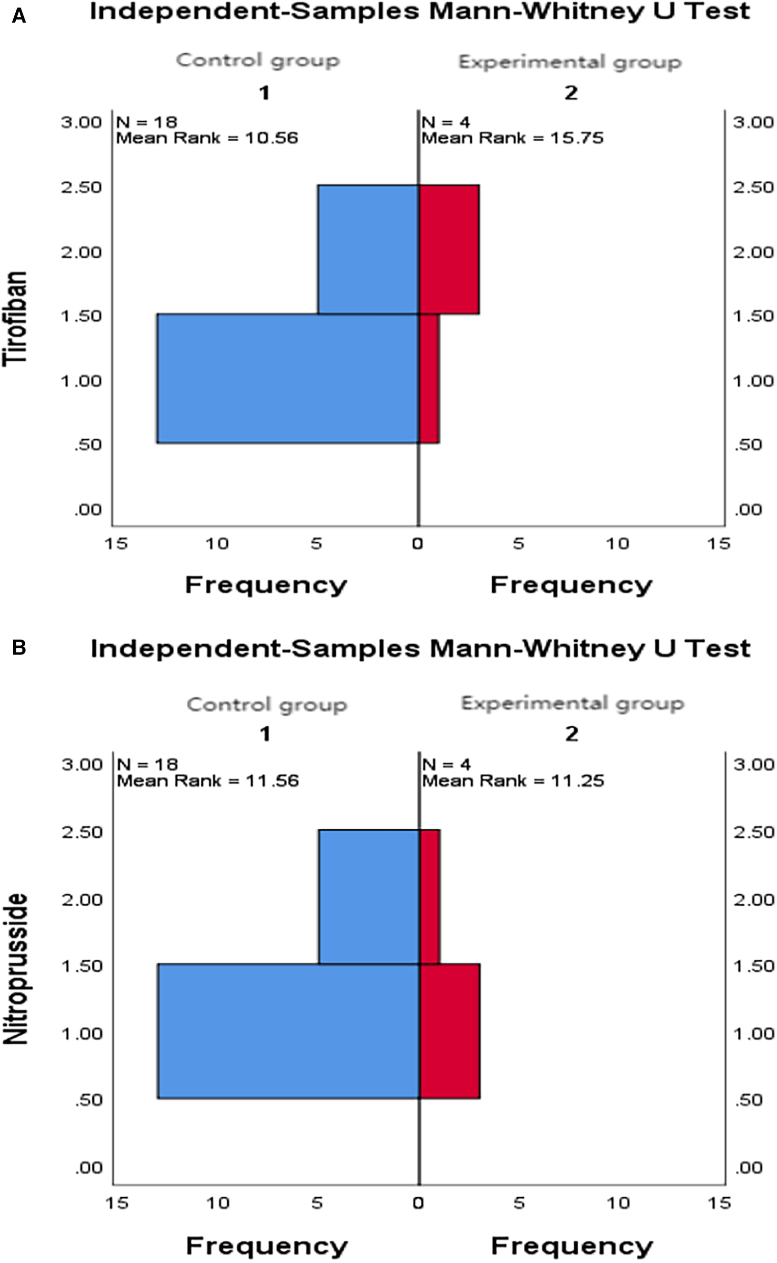 (A) Comparison of intraoperative tirofiban application between the two groups. (B) Comparison of intraoperative nitroprusside application between the two groups.
