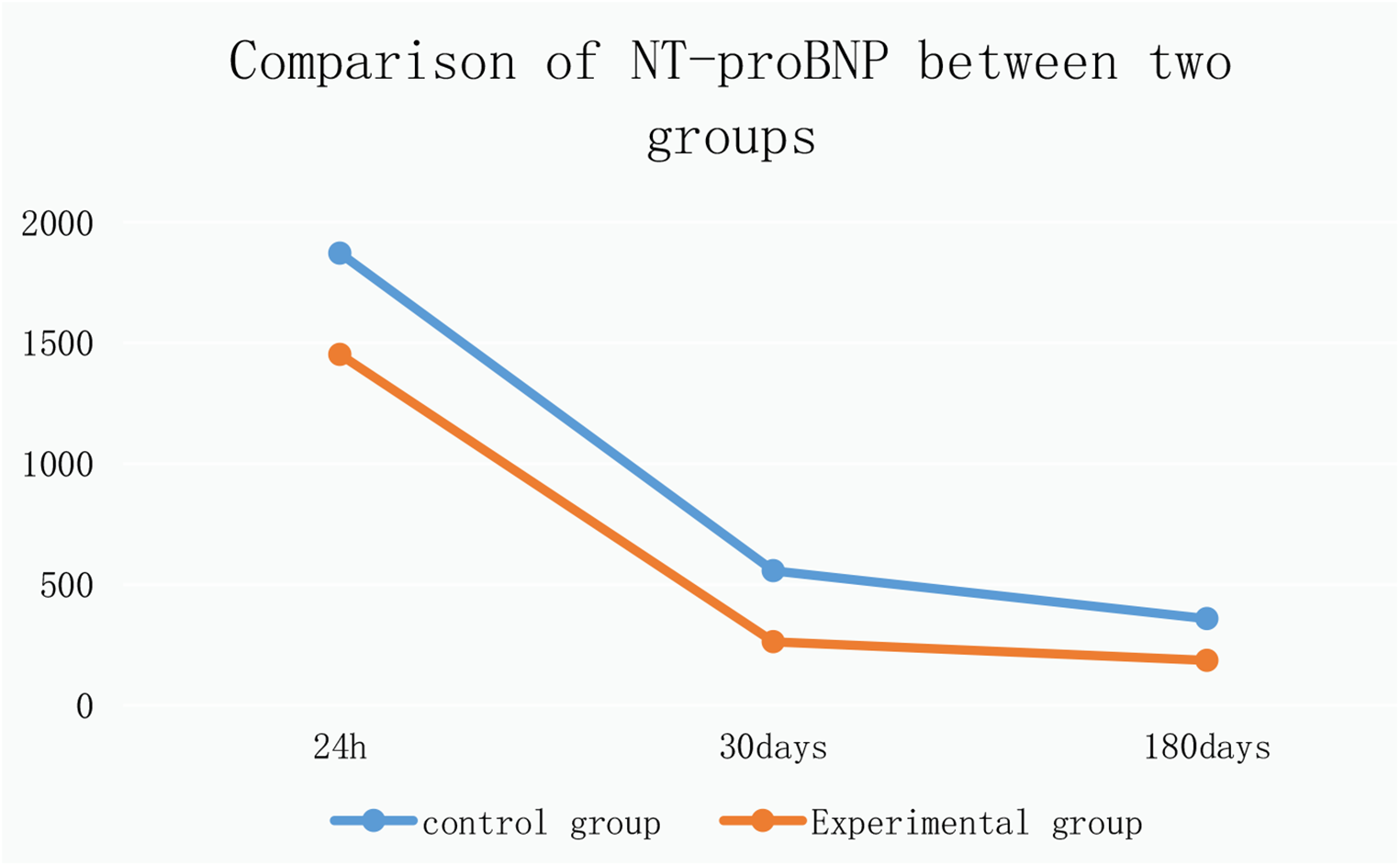 Comparison of NT-proBNP between control and experimental groups.