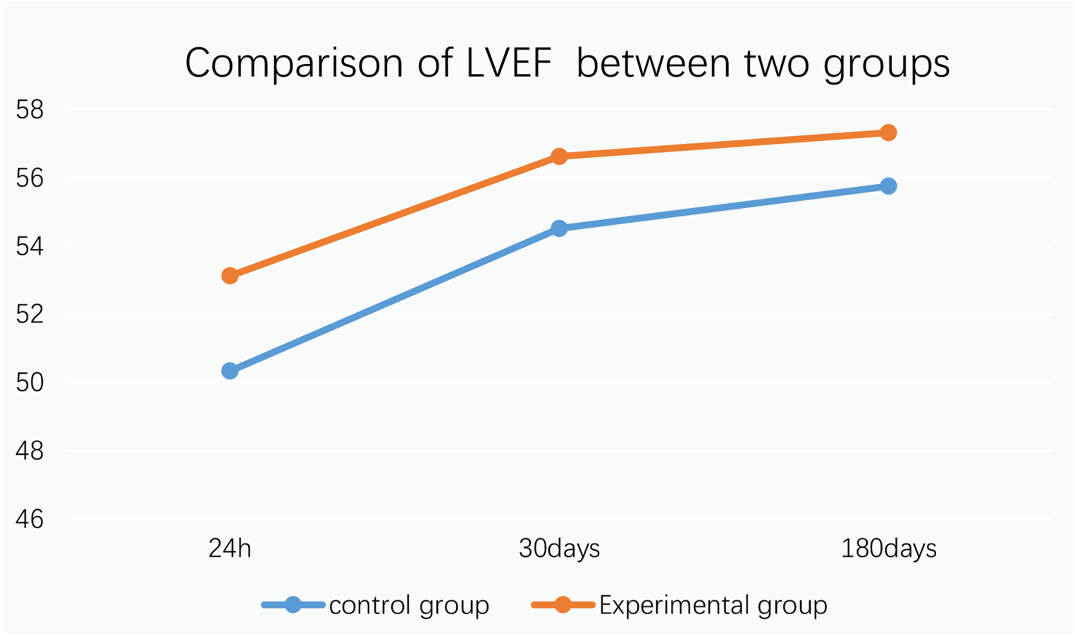 Comparison of LVEF between control and experimental groups.