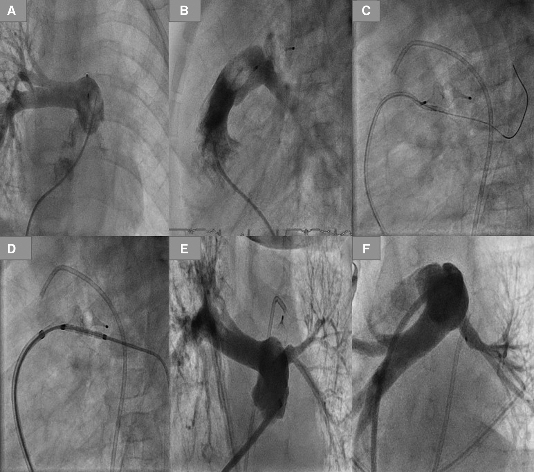 For some children weighing more than 2,500 g (n = 9), the femoral artery was accessed using a 3.2 F sheath to perform angiography in the descending aorta to evaluate the results of the intervention.