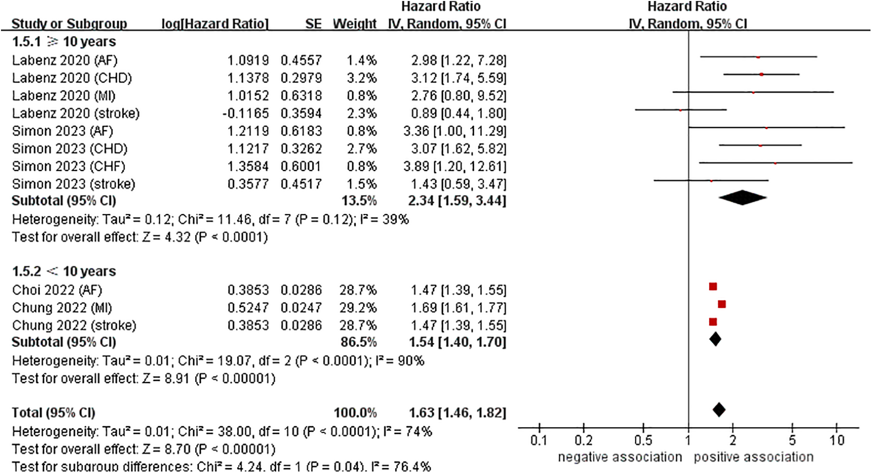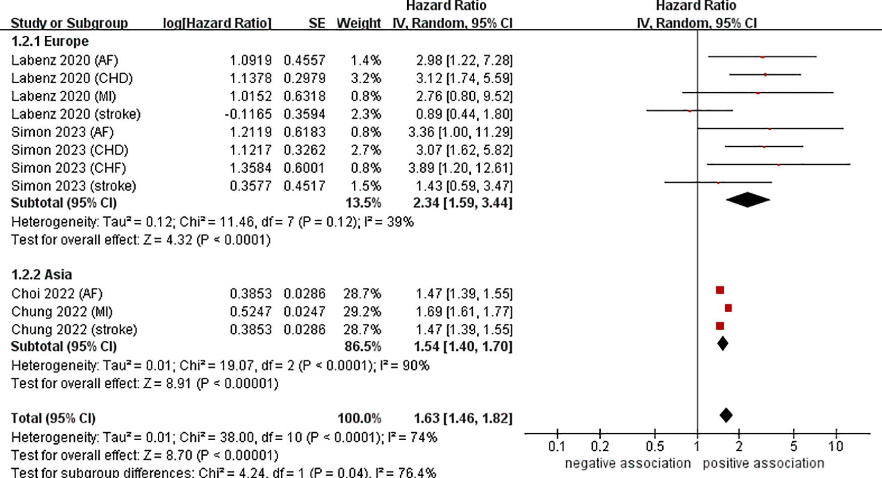 | Simon (24) (stroke) | 1.63 (1.46–1.83) | <0.00001 | I2 = 76%, P < 0.0001 |