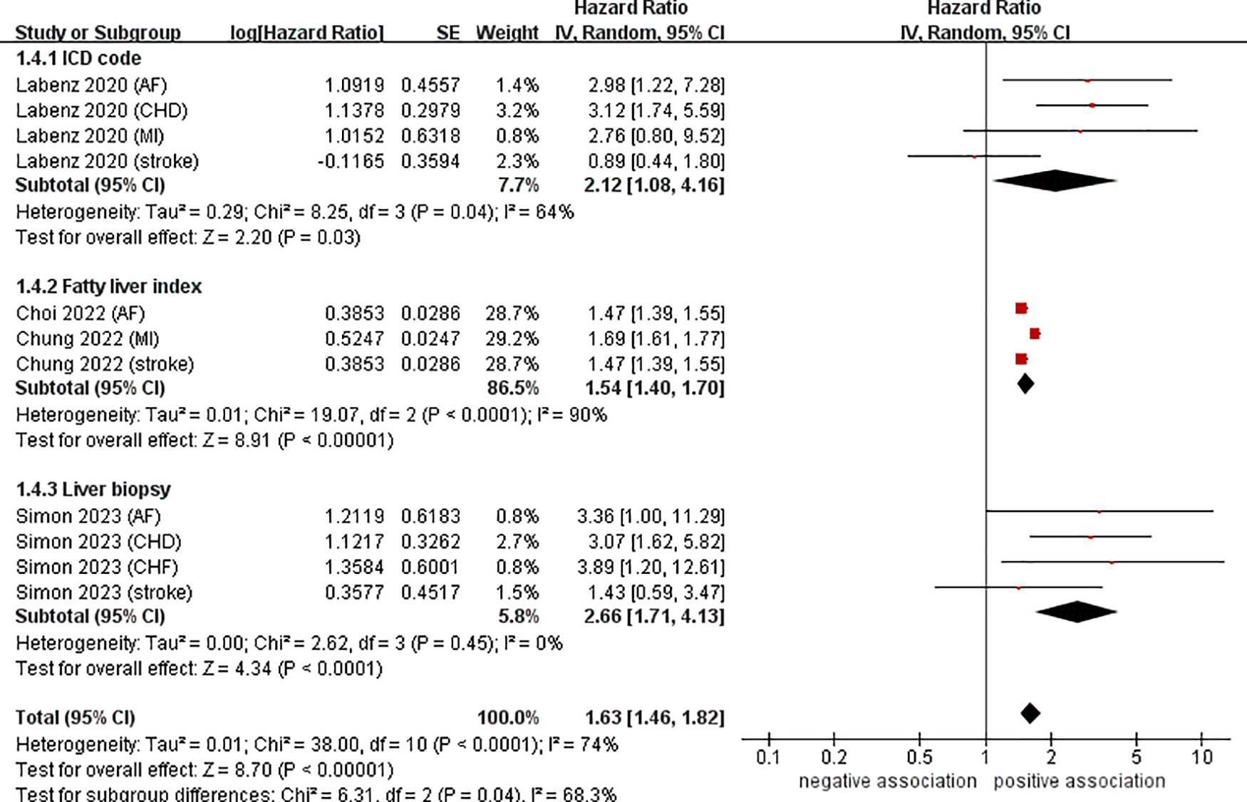 | Labenz (21) (AF) | 1.61 (1.45–1.80) | <0.00001 | I2 = 75%, P < 0.0001 |