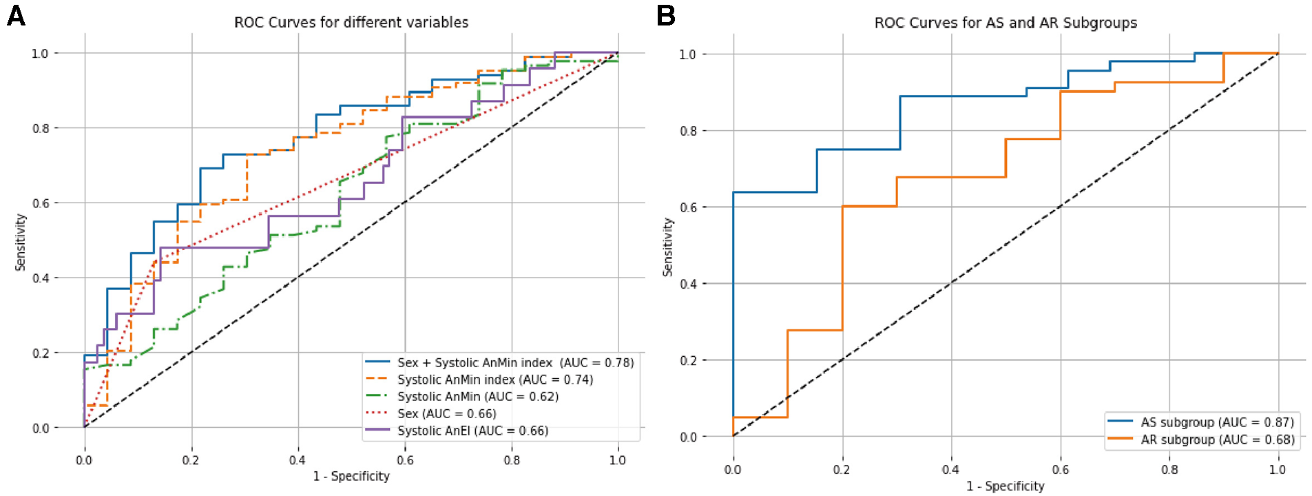 Systolic measurements are recommended for AR patients. Gender and the AnMin index are significant predictors, particularly potent in AS patients.