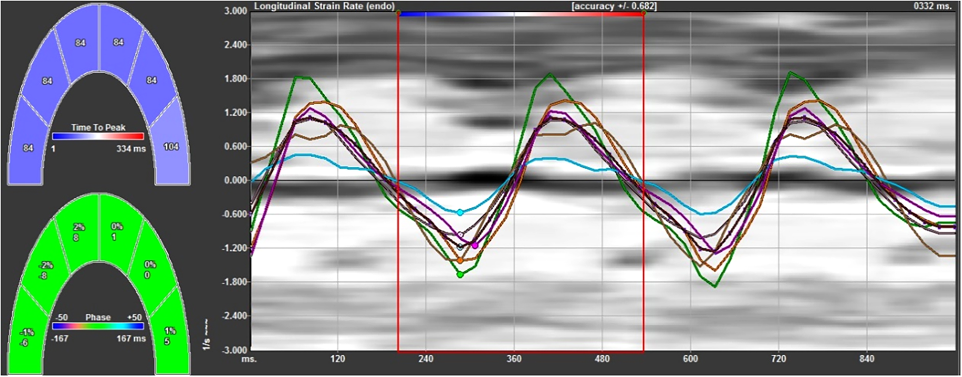 A GE Voluson E8/E10 color Doppler diagnostic apparatus, with a probe frequency of 2–5 MHz. Two-dimensional (2D) strain analysis software (for the VVI images; TomTec) was used for offline post-processing analysis.