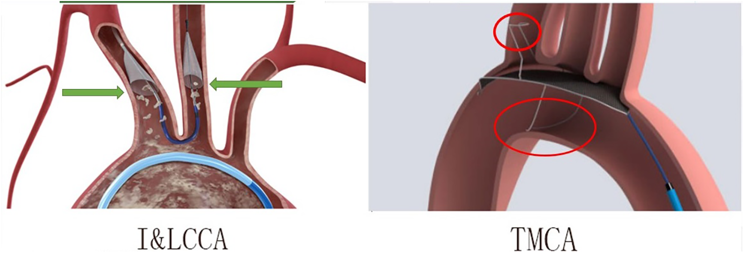 The differences between the I&LCCA type (the innominate–left common carotid artery type) and TMCA type (the three major cerebral arteries type). I&LCCA type: more suitable, less vascular endothelium damage; TMCA type: integrated design, exerting pressure on vascular endothelium.