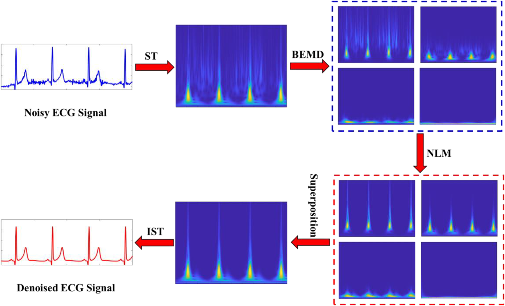 electrocardiogram signal, noise removal, S-transform, bi-dimensional empirical mode decomposition, non-local means