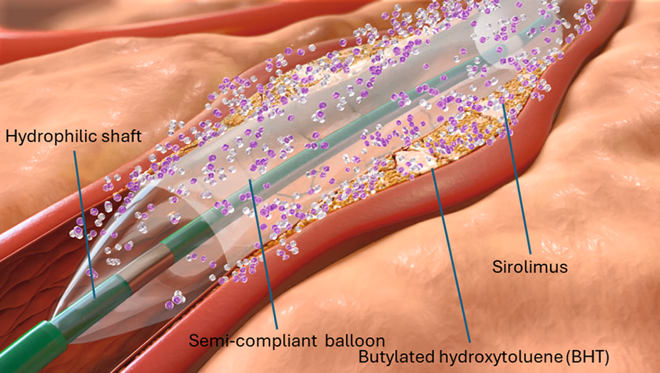 Following the successful introduction of limus-eluting stent platforms, there has been an ongoing interest to investigate limus-based drugs for the application in DCBs. However, this process has been rather challenging and several technical hurdles had to be overcome, since limus-based drugs, including sirolimus, show a low acute absorption and transfer rate due to the drugs rather low lipophilicity, in comparison to paclitaxel (6, 7).