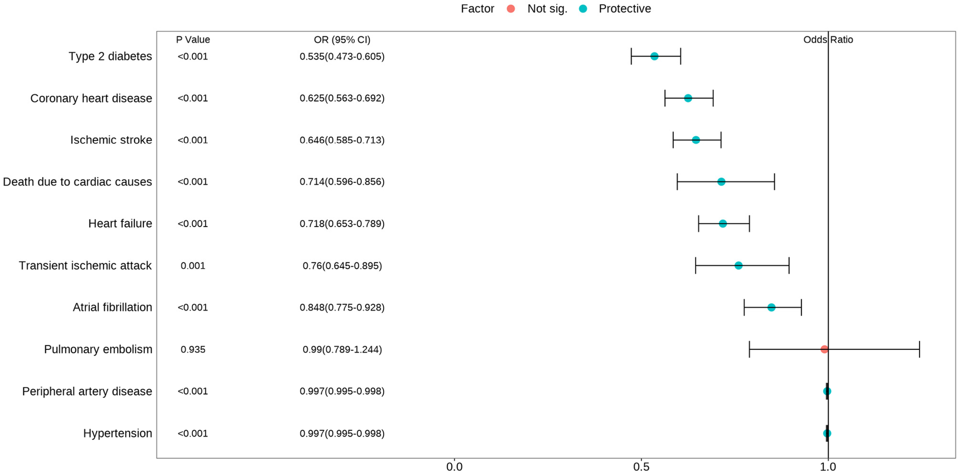 | Pulmonary embolism | 0.990 (0.789–1.244) | 0.935 | 0.650 (0.269–1.571) | 0.340 | 0.988 (0.704–1.386) | 0.945 | 5.94 × 10−3 | 0.334 | 315 | 0.191 |