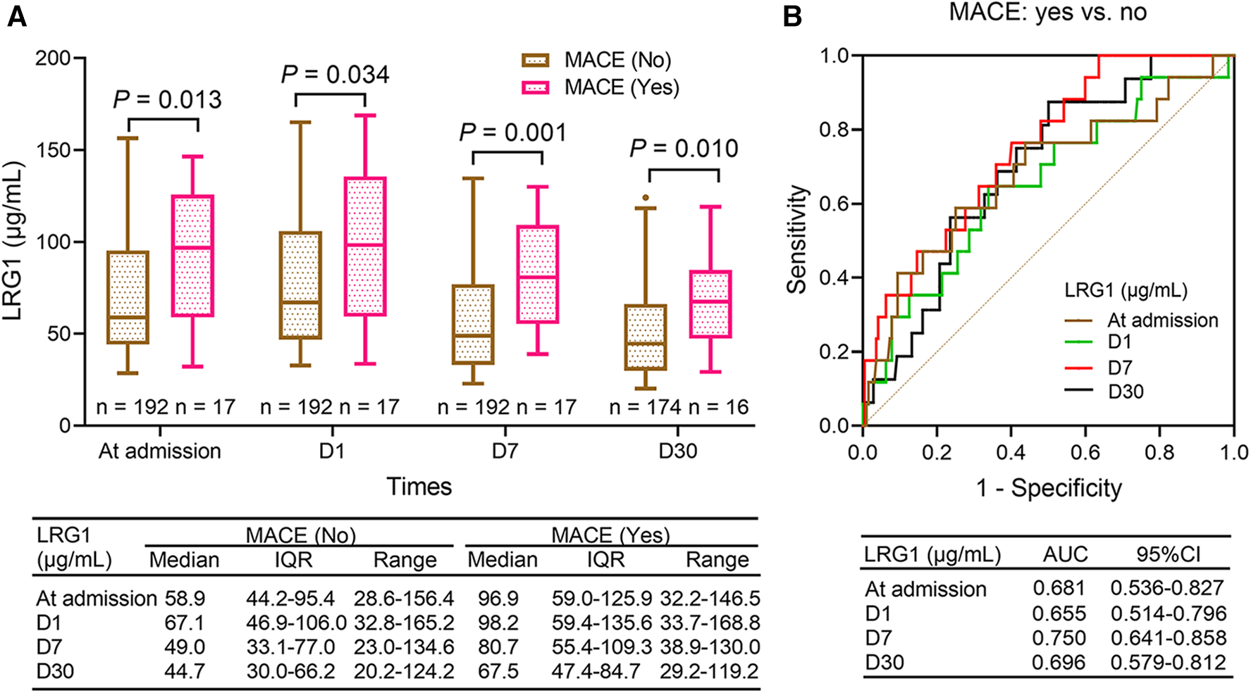 Plasma LRG1 increases from admission to D1 and gradually declines until D30, which positively links with Th17 cells and MACE risk in patients with STEMI.