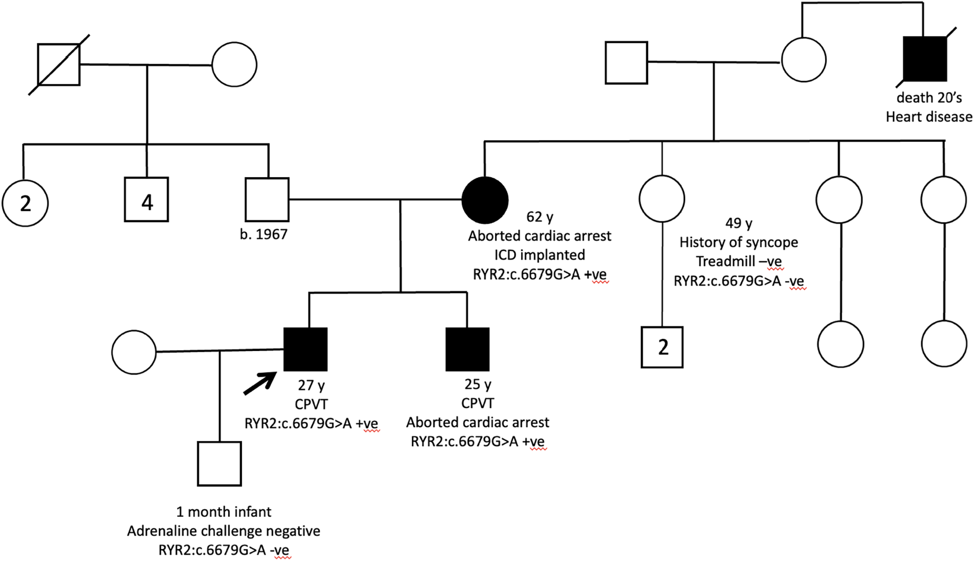 Pedigree of the CPVT family of patient 5.