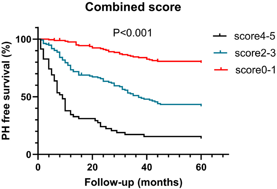 The parameters for continuous data that were normally distributed and expressed as mean ± standard deviation and those that had a skewed distribution were expressed as median (M) and interquartile range. Countable data were expressed as percentages. All statistical tests were two-sided, and a P value of <0.05 was considered statistically significant. Measurement data were analyzed using the Mann–Whitney U-test or t-test. Pearson's and χ2 tests were used for analyzing countable data to compare the clinical characteristics and measure the risk factors of patients with and without new PH. From this analysis, potential predictors of PH were identified, and continuous independent variables with P < 0.05 were analyzed using receiver operating characteristic (ROC) curves to determine their optimal cut-off values. The best cut-off point for each marker was obtained using the Youden index. According to the optimal cut-off value from the ROC curve analysis, univariate and multivariate Cox proportional hazards models were input to determine the influence of various risk factors on new-onset PH during the follow-up period. In the Cox model, Kaplan–Meier curves for no PH events were calculated to describe the occurrence of new PH events by risk factors. Differences between high and low levels of these factors were tested using the log-rank test.