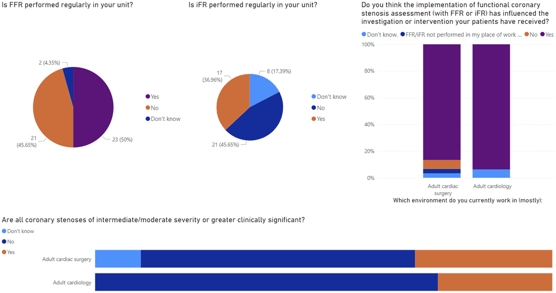 The survey revealed that in half of the surgical and cardiology units functional assessment is performed in CABG patients; there is a general perception that functional testing has improved patient care and its use would clarify the role of moderate coronary lesions that often need multidisciplinary rediscussions; moderate stenosis are felt to be clinically relevant; and anatomical considerations need to be taken into account together with functional assessment.