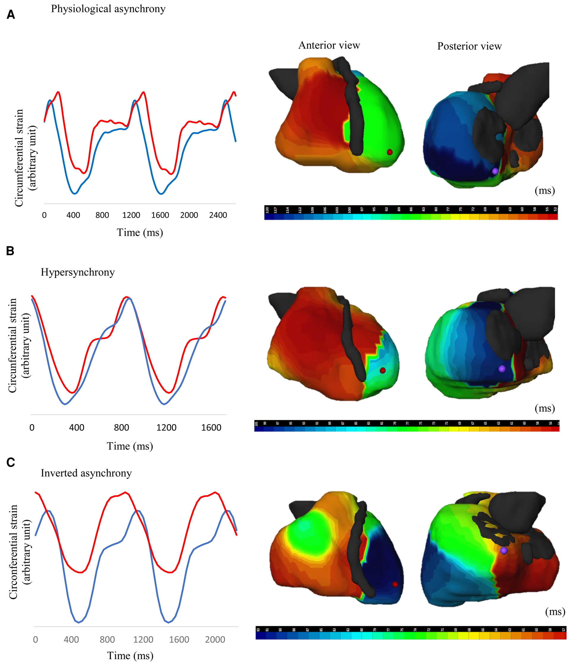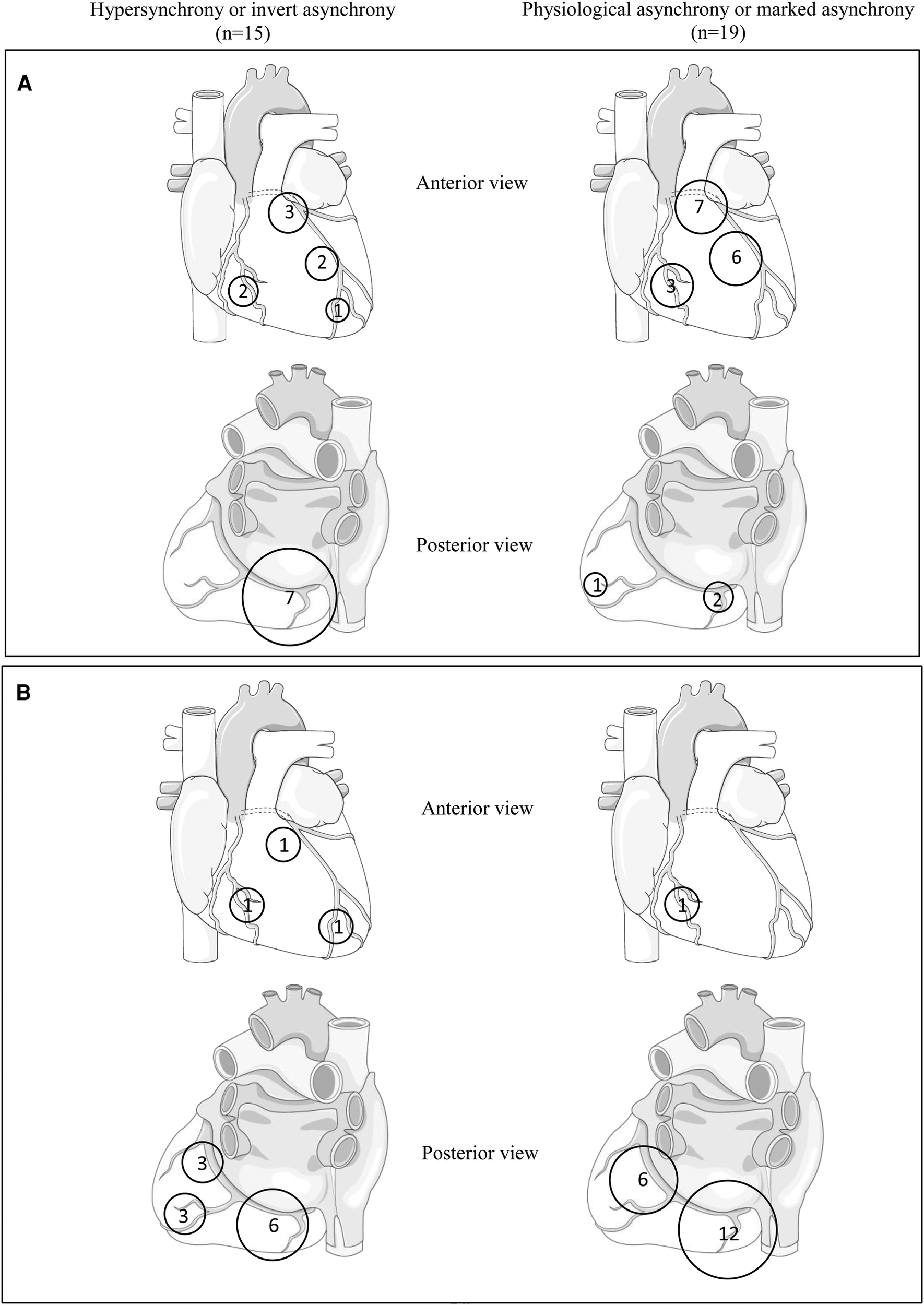 To identify criteria predictive of a favorable response to pacing, it seems essential to analyze electrical and mechanical LV activation sequences. These reflect electrical depolarization and LV contraction, which follow a specific temporal rhythm, allowing synchronized ventricular contraction and progressive cavity emptying. The usual sequence of LV contraction introduces an element of asynchrony, as supported by the temporal disparities between early contraction of the apex and late contraction of the base (15). Within the scope of HCM, deviations from the established physiological asynchrony pattern have become evident (16). Specifically, a subgroup of patients exhibit hypersynchrony, which is a loss of the physiological apex-to-base delay (ABD), or inverted asynchrony, which is an inversion of this delay altogether.