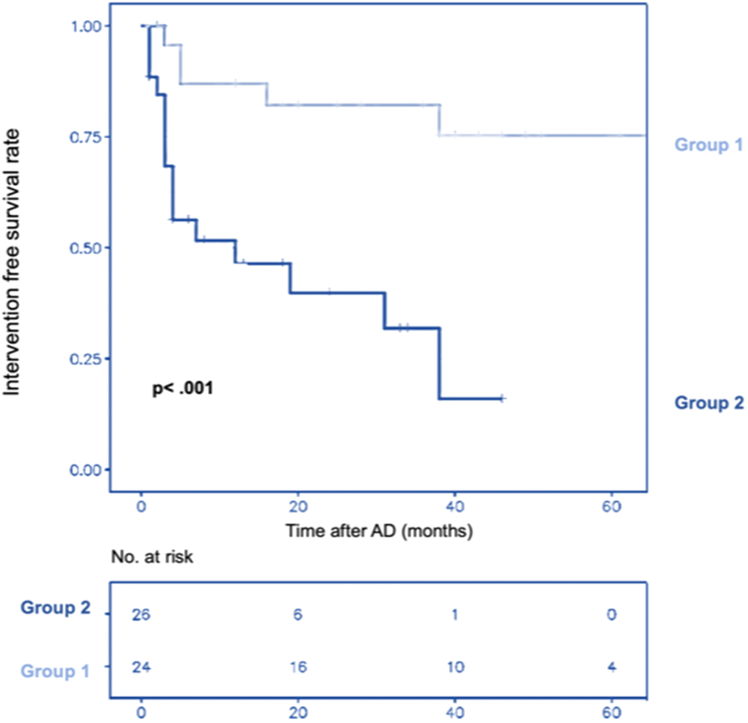 Data are presented as the mean ± standard deviation for continuous variables and as counts (%) for categorical data. For categorical variables, the relationship between variables was studied using the χ2 test or Fisher's exact test as appropriate. The Wilcoxon and Student’s tests were used to analyze continuous variables. The normality of the distribution was assessed with the Shapiro–Wilk test. Intervention-free survival was estimated with a Kaplan–Meier curve. The subgroup analyses were performed using a Kruskal–Wallis test. All statistical analyses were performed using R software version 4.2.2 (R Foundation for Statistical Analysis, Vienna, Austria).