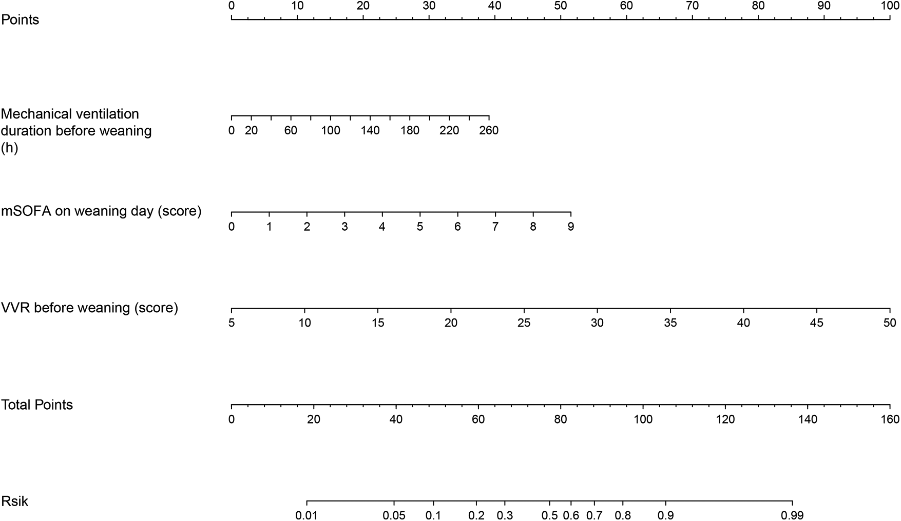 Zhang Z, Tang W, Ren Y, Zhao Y, You J, Wang H, Zhao S and Zuo X (2024) Prediction of ventilator weaning failure in postoperative cardiac surgery patients using vasoactive-ventilation-renal score and nomogram analysis. Front. Cardiovasc. Med. 11:1364211. doi: 10.3389/fcvm.2024.1364211