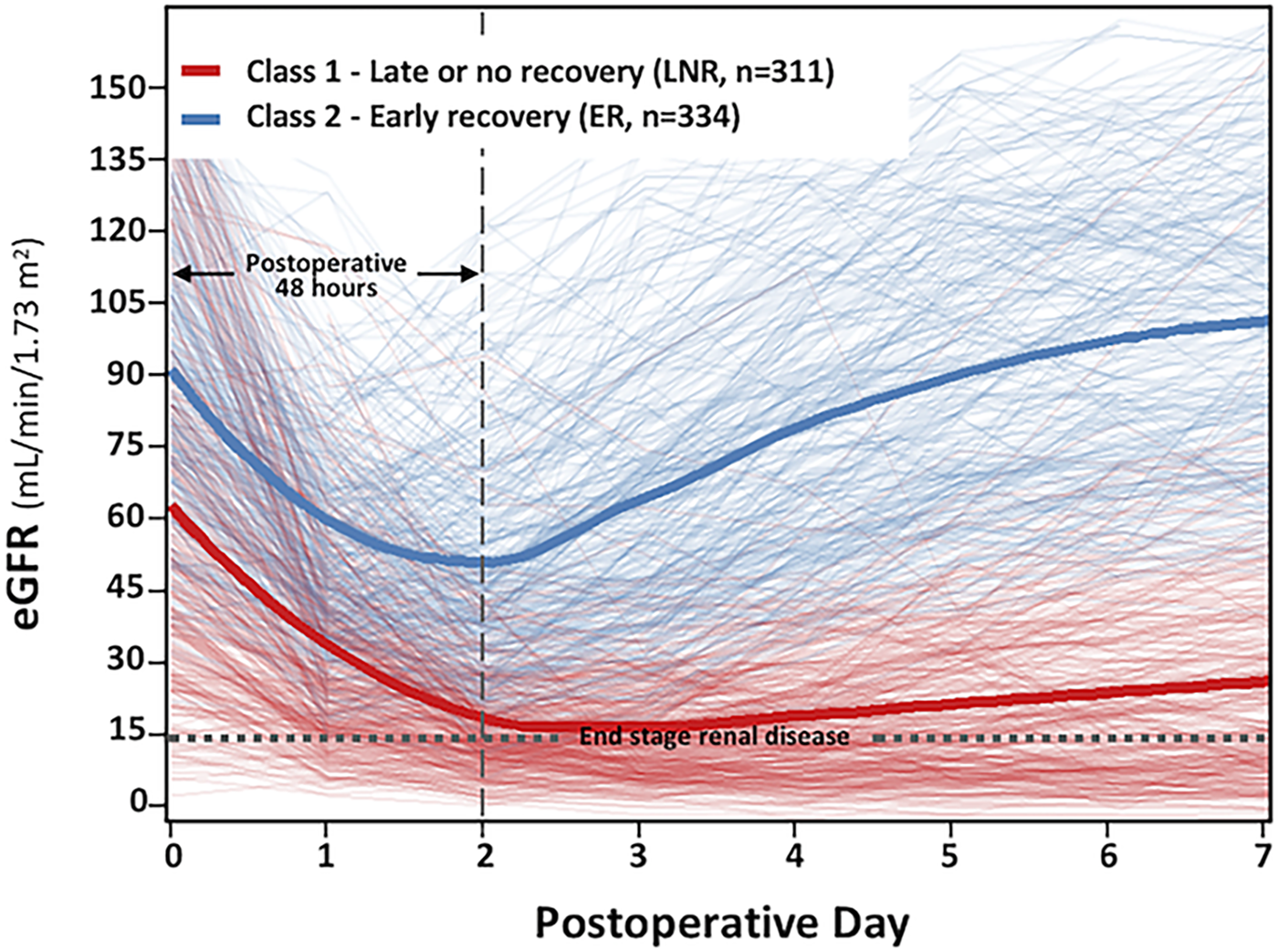 Identification of PO-AKI recovery trajectories