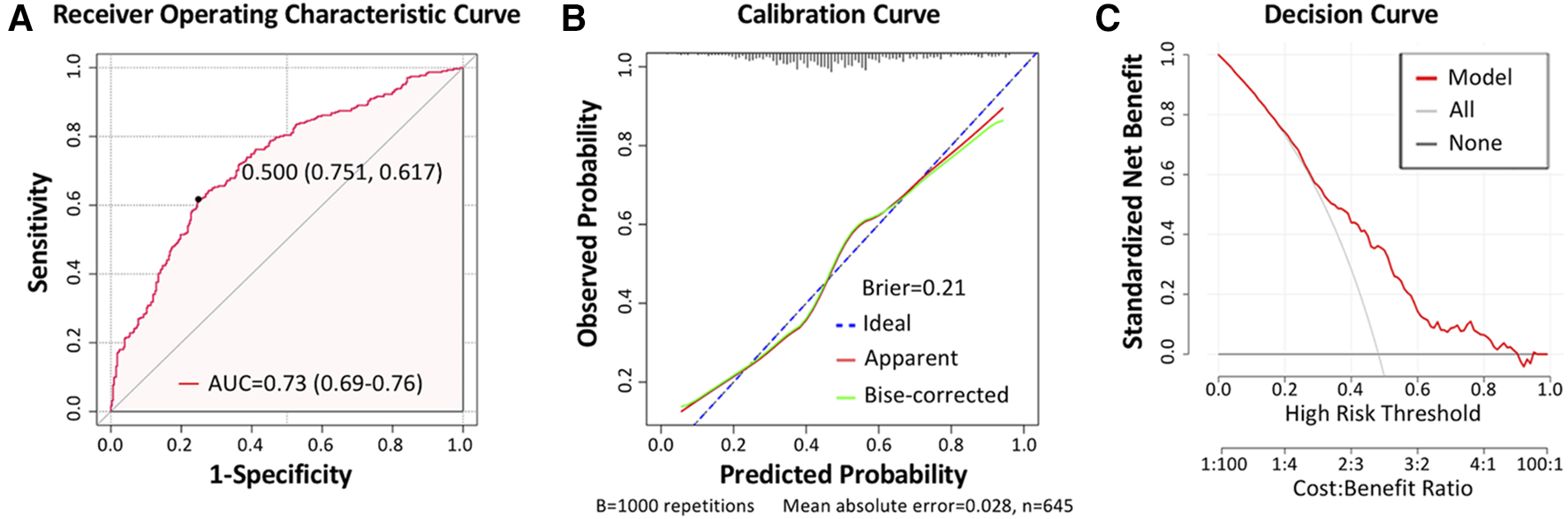 Statistical analysis was performed using the IBM SPSS (version 25.0) and R software (version 4.2.0) (http://www.R-project.org). Normal distributed continuous variables were presented as means ± SD and compared by the T-test. Non-normal distributed continuous variables were presented as median [interquartile ranges (IQRs)] and compared by the Mann–Whitney U-test. Categorical variables were presented as counts (proportions) and compared by the chi-square test. Univariate and multivariate logistic regression analyses were applied to screen the independent predictors of trajectory subgroups, and the odds ratio (OR) and 95% confidence interval (95% CI) were also recorded. All variables in the univariate regression analysis were entered into the stepwise multivariate logistic regression analysis. A prediction model was established by adopting variables with statistical association and clinical significance and excluding variables with collinear correlation. Then, the performance of our prediction model was evaluated via internal validation in the original cohort by bootstrap (1,000 resamples). Diagnostic performance was evaluated by plotting receiver operating characteristic (ROC) curves and their values of area under the curve (AUC). The accuracy of the diagnostic test was evaluated by sensitivity, specificity, positive predictive values, and negative predictive values for different diagnostic criteria. P < 0.05 was considered statistically significant.