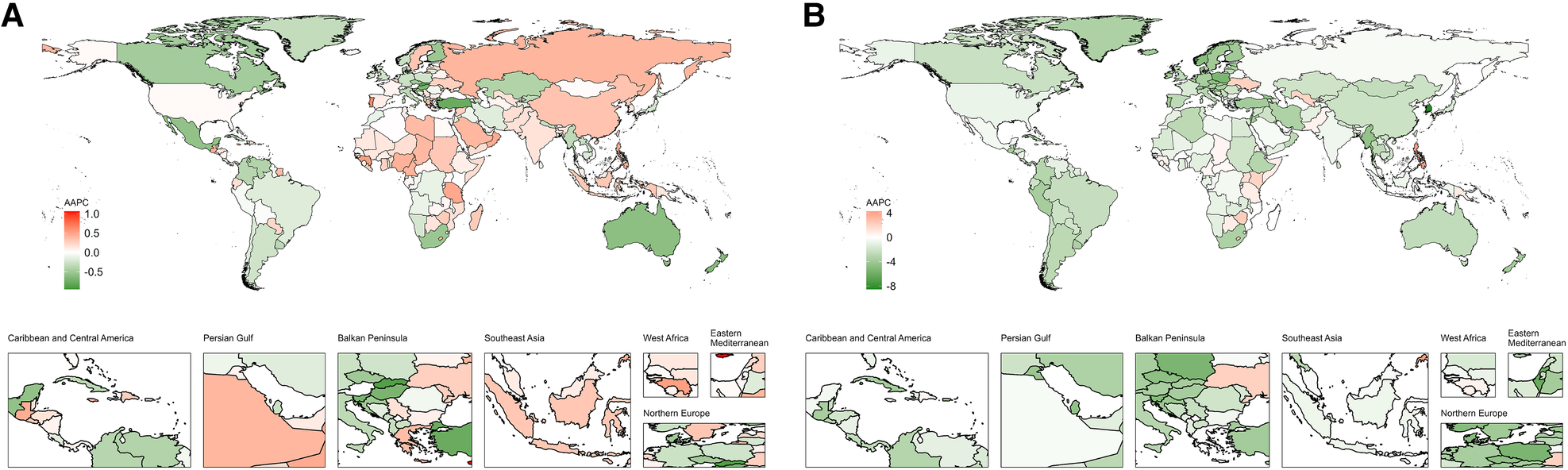 | Location | ASPR, per 100,000 (95% UI) | AAPC (95% CI) | ASDR, per 100,000 (95% UI) | AAPC (95% CI) | ||