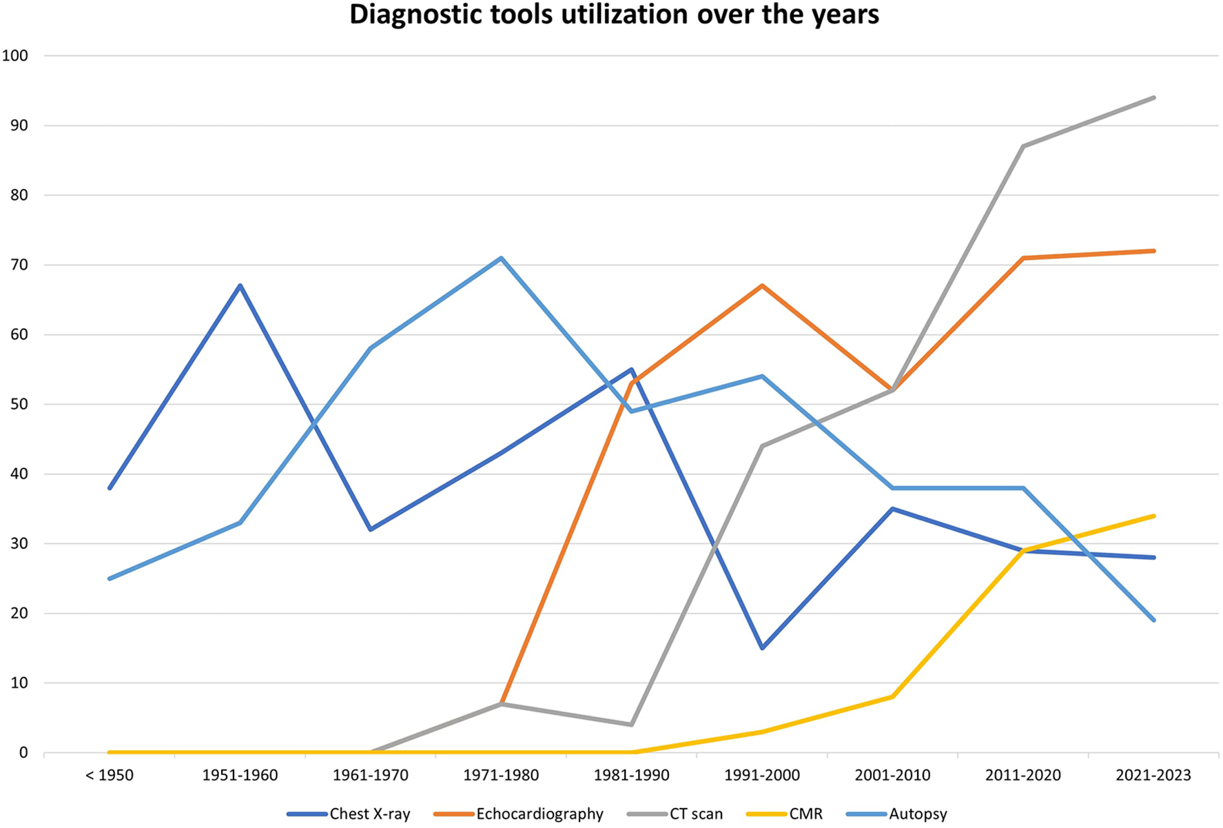 Figure 5 shows the trends of diagnostic tool utilization over the years.