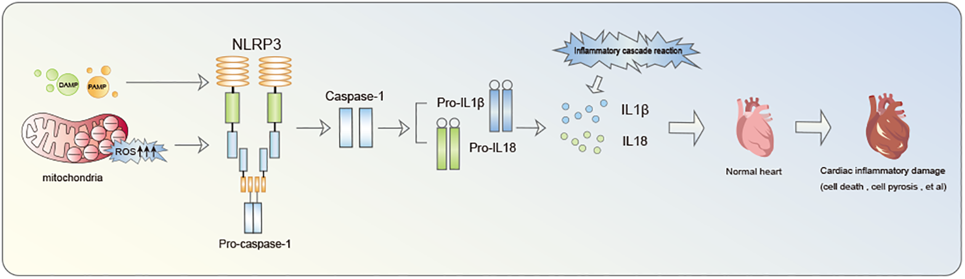 The inflammatory cascade initiated by NLRP3 inflammasome notably contributes to cardiac damage.