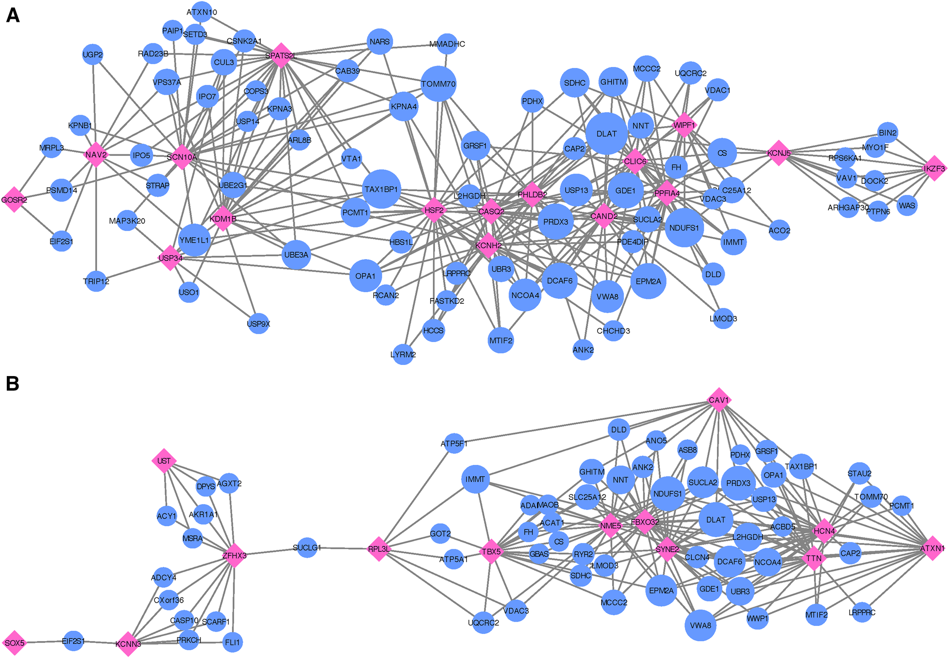 The sets of nearest genes to the SNPs identified through the GWAS analyses as common or unique to either recurrent or single AF/MI events (in total six sets) were analyzed for tissue specificity (differentially expressed gene sets in each tissue). We employed both FUMA (22) and gene ontology enrichment using Fisher’s exact over-representation test in PANTHER (protein annotation through evolutionary relationship) (27). Here, biological processes with a false discovery rate (FDR) adjusted for multiple testing <0.05 were considered functionally enriched for the gene set. To further investigate the processes connected to these genes, we performed gene co-expression network analysis (28–30), where the hypothesis is that highly correlated genes have a regulatory relationship or similar response in a condition (31). Using the identified gene sets as target genes in an egocentric gene co-expression network analysis, we generated a network from the shared neighborhoods among the closest neighbor genes of each target gene in the gene set, and we inspected the gene functions in the network.