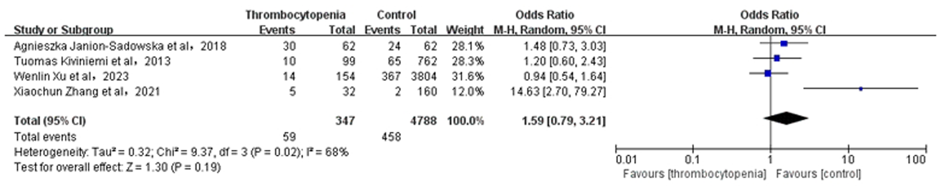 Exclusion criteria: (1). Full text cannot be obtained; (2). Non-English literature; (3). The definition of thrombocytopenia is not international standardized; (4). No clinical outcomes were reported in AF.