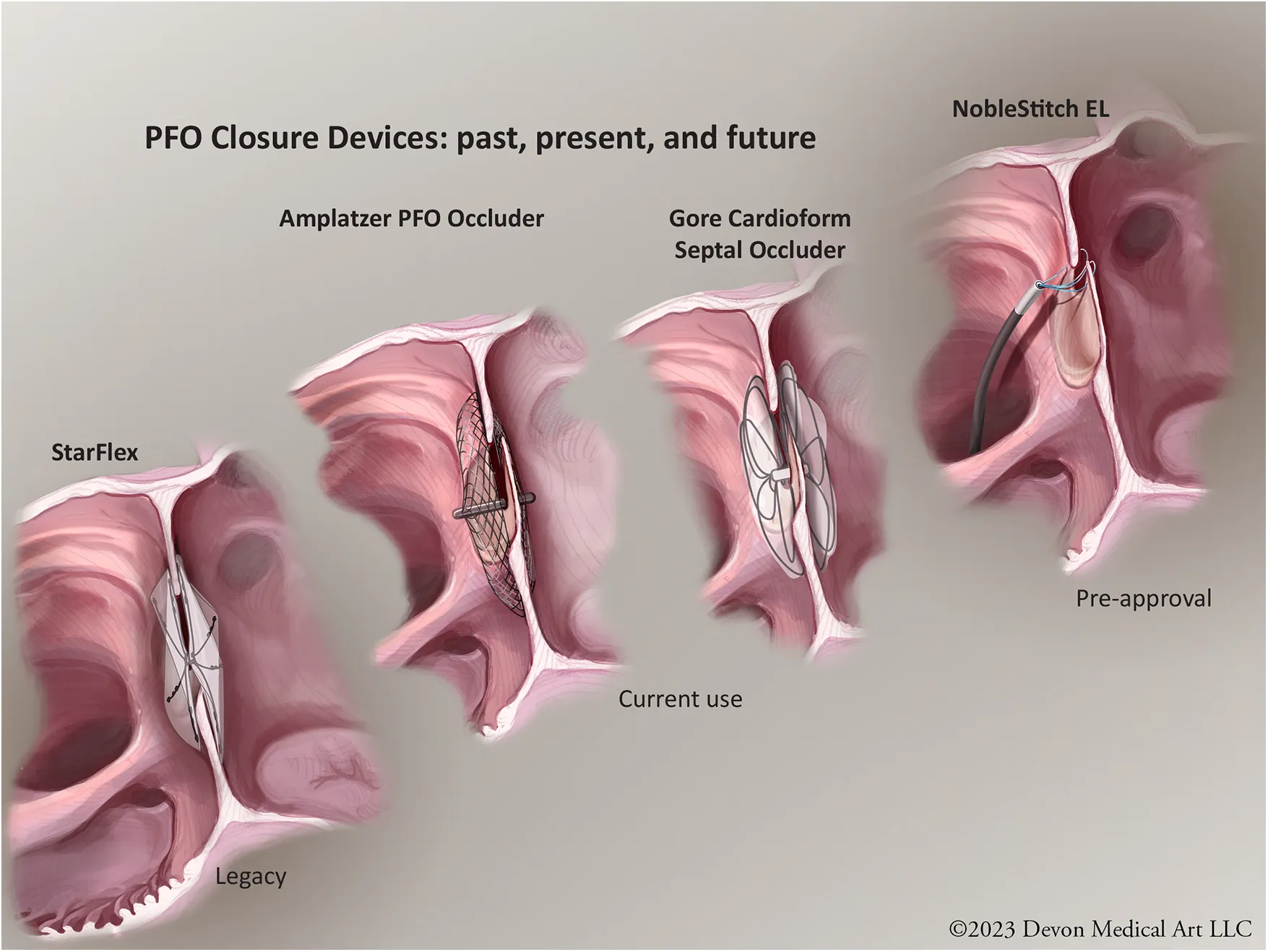 PFO closure devices: past present and future. © Devon Medical Art LLC.