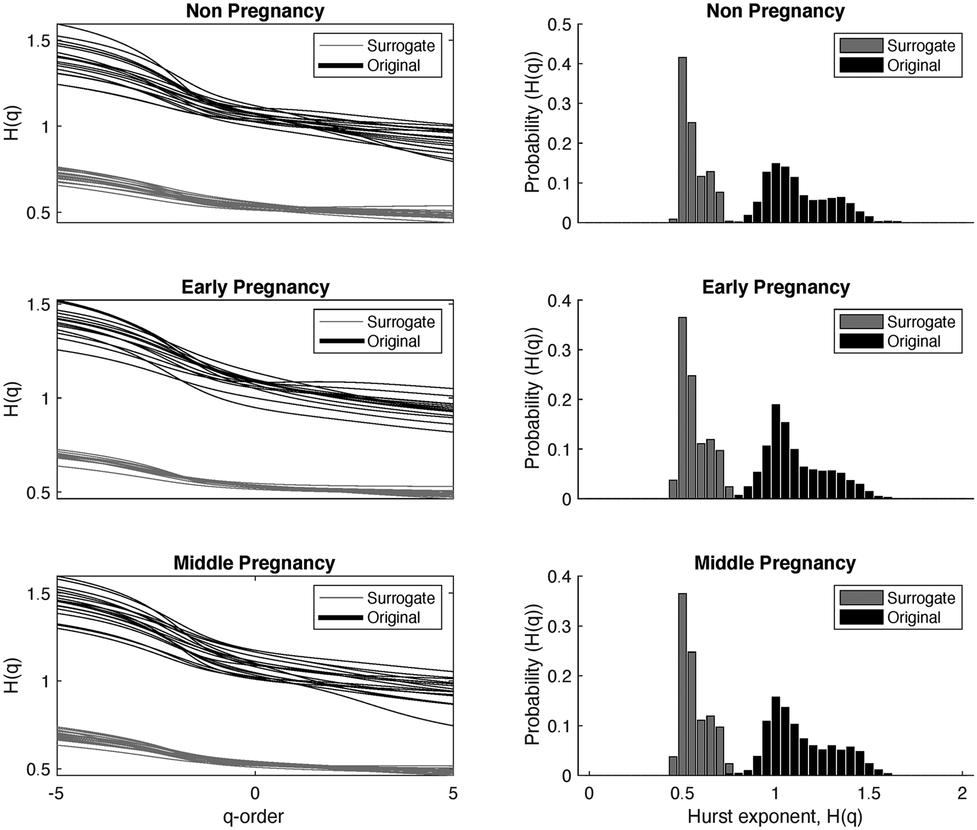 Baumert M Javorka M Seeck A Faber R Sanders P Voss A . Multiscale entropy and detrended fluctuation analysis of qt interval and heart rate variability during normal pregnancy. Comput Biol Med. (2012) 42:347–52. 10.1016/j.compbiomed.2011.03.019