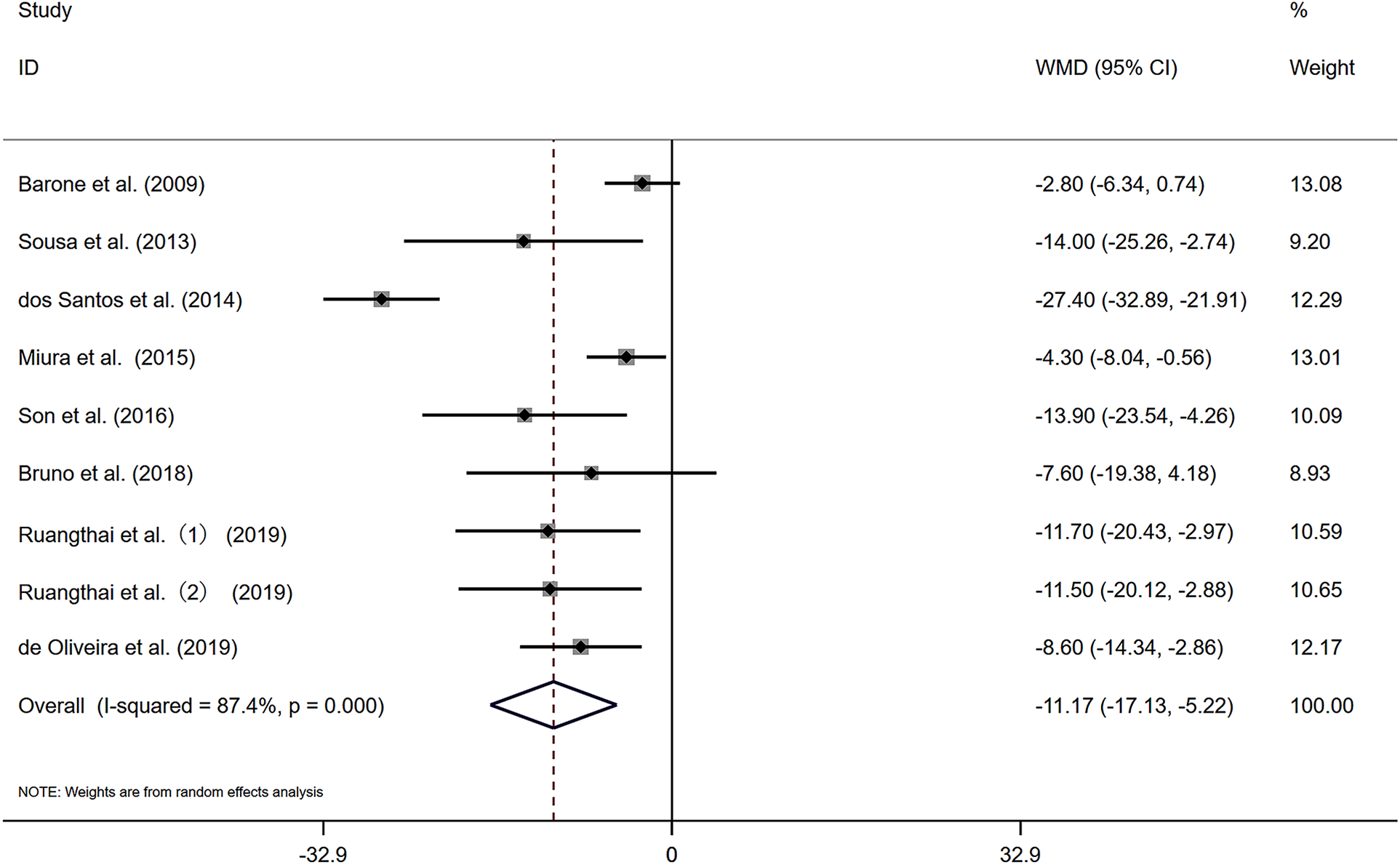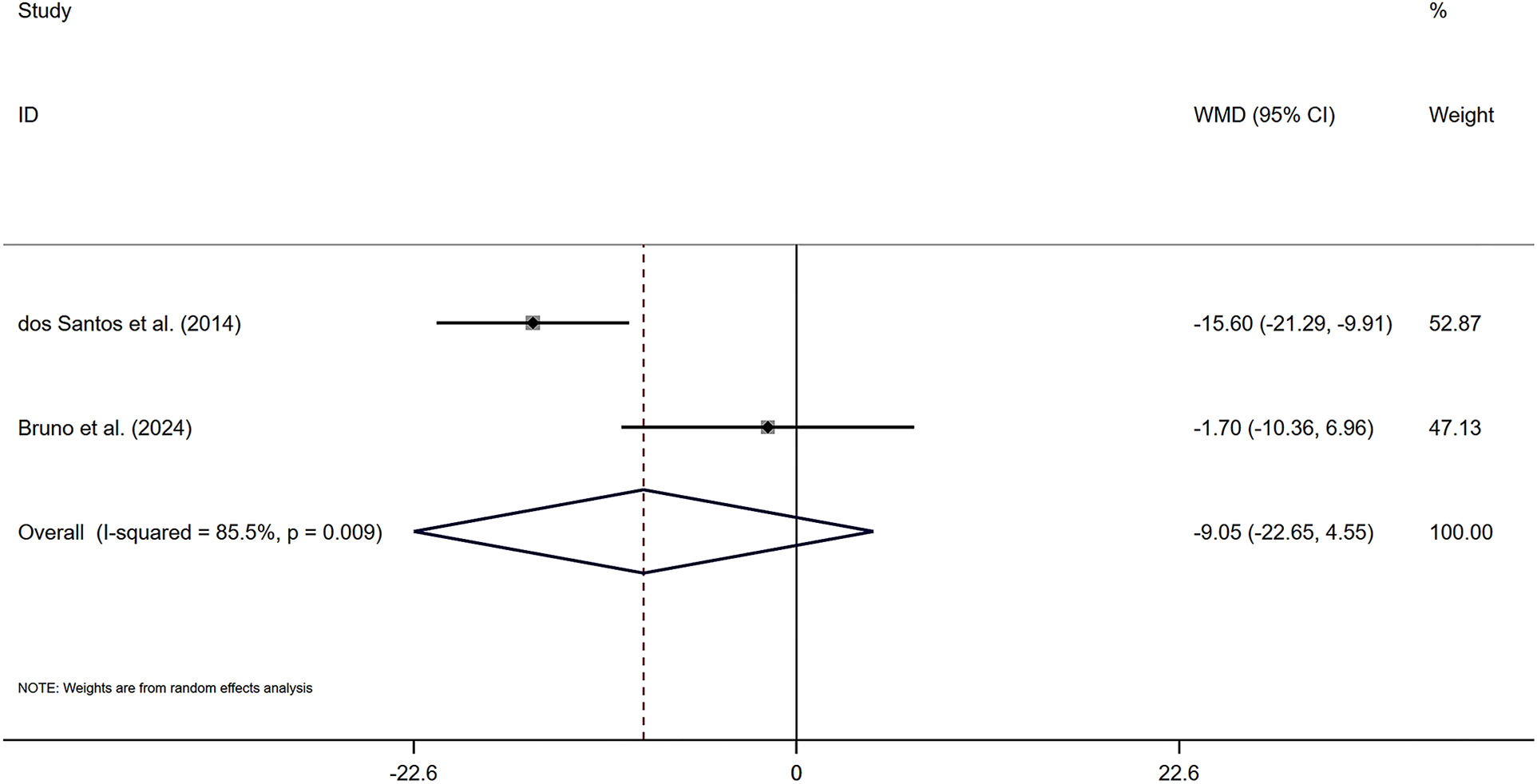 For this analysis, we established specific inclusion criteria for the selected studies. Continuous data from these studies were synthesized using meta-analytic techniques with RevMan 5.3 and Stata 15.0 software. Mean values and standard deviations (SD) were extracted to construct forest plots for analysis. Given that outcome measures were continuous variables reported in uniform units, we employed weighted mean difference (WMD) along with 95% confidence intervals (95% CI) for statistical evaluation. To evaluate the heterogeneity among different studies, heterogeneity tests (I2) were conducted. An I2 value greater than 50% indicates substantial heterogeneity between each study, necessitating further analyses such as subgroup analysis and meta-regression to investigate the sources of heterogeneity. Sensitivity analysis was performed to examine the robustness of the study. For the test of combined statistics, the probability value (P) of the statistic was derived based on the Z-value. When the P-value is less than 0.05, it suggests that the results from combining multiple studies are statistically significant. Egger's test was used to assess whether there was publication bias in this study.