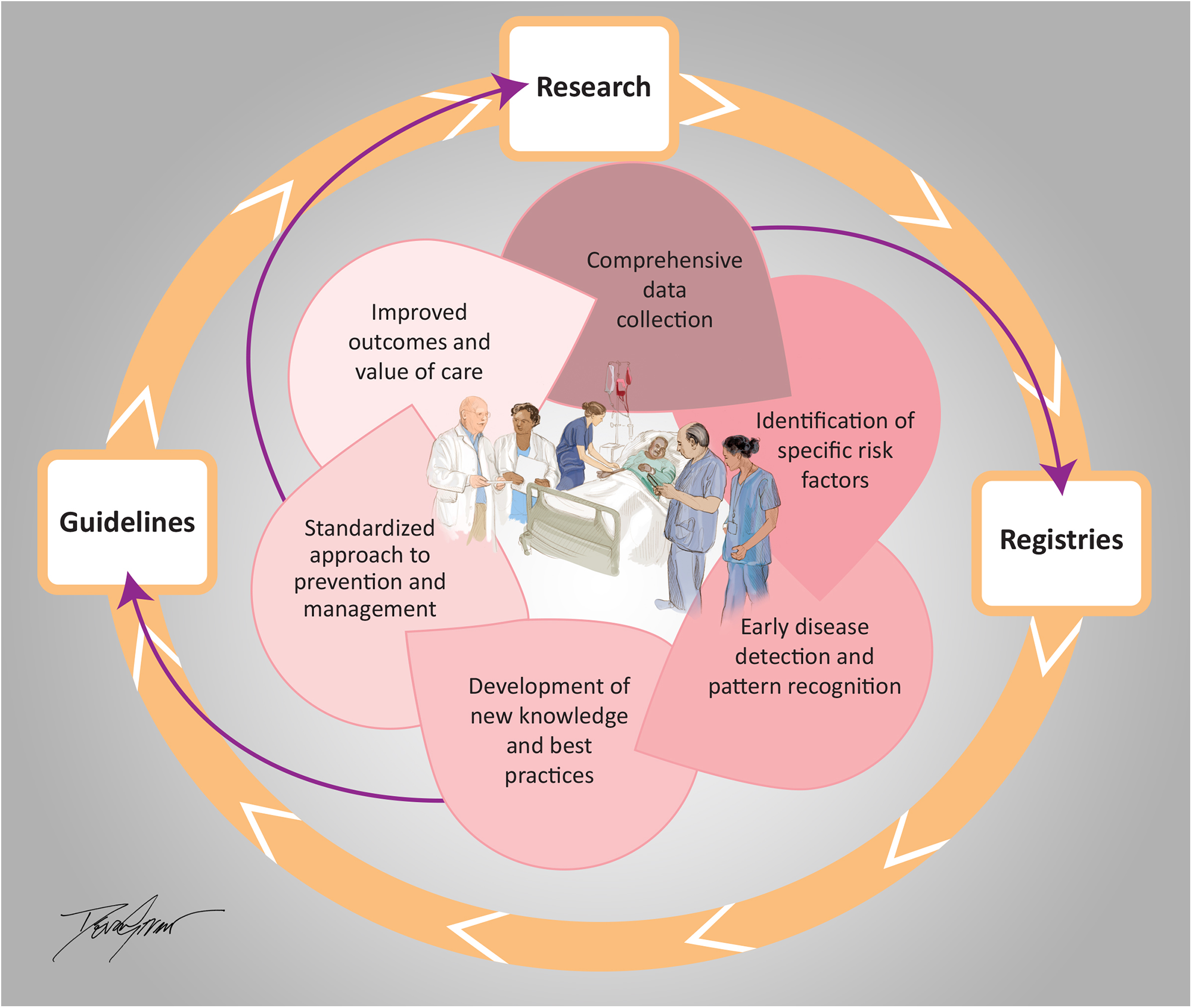 Inova schar heart and vascular integrated learning health care system. Illustrated by Devon Stuart (2024).