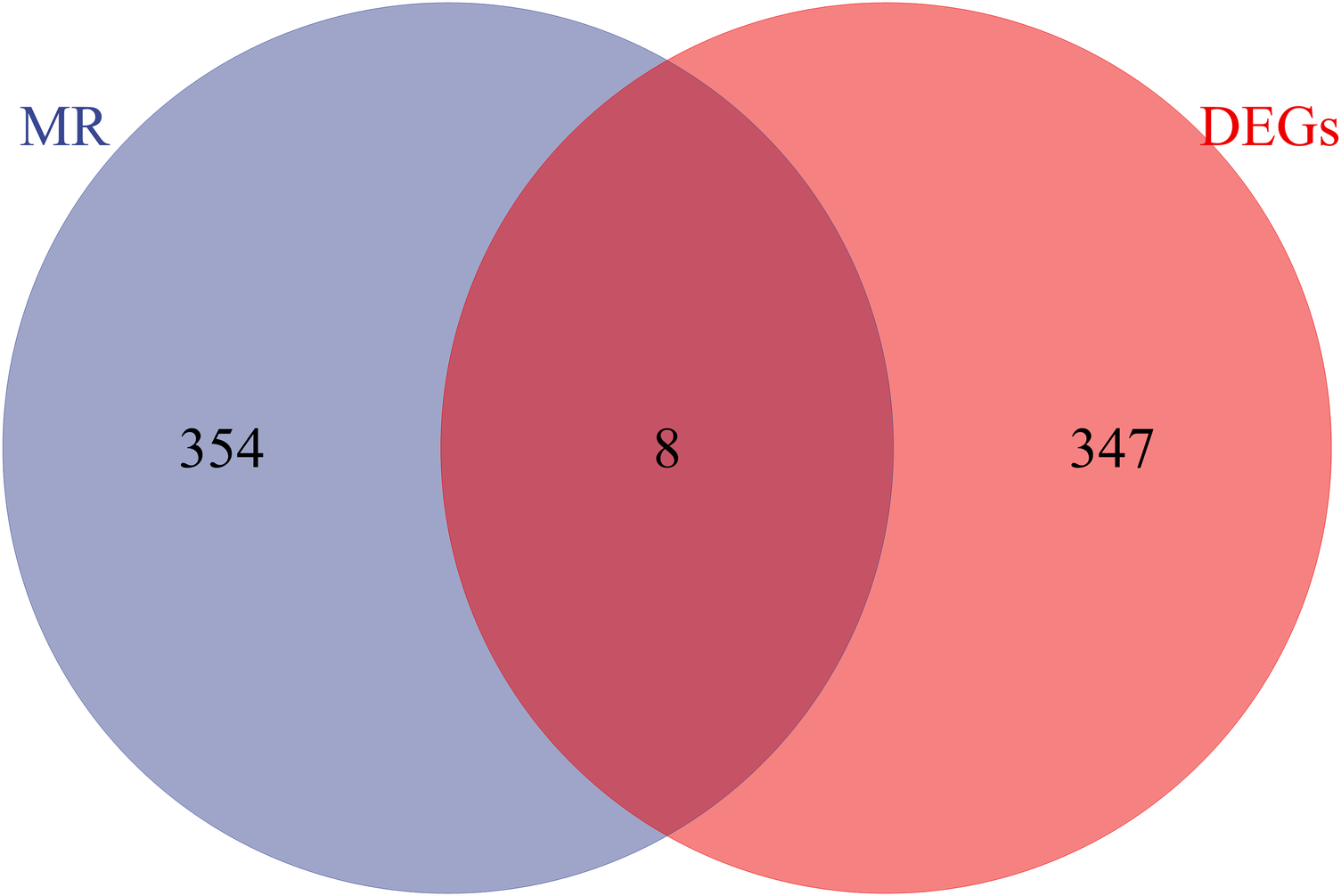 Venn diagram of the intersection of differentially expressed genes and eQTL genes in MR analysis.