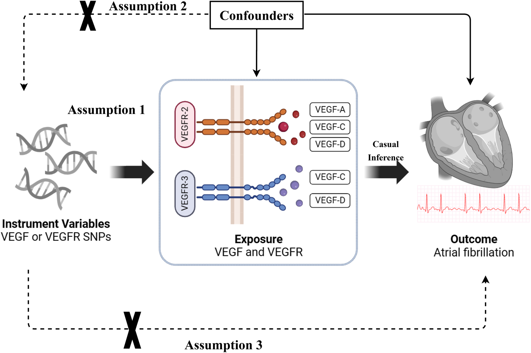 Observational studies have found that vascular endothelial growth factor (VEGF) levels are associated with the risk of cardiovascular disease. However, it remains unclear whether VEGF levels have a causal effect on the risk of atrial fibrillation.