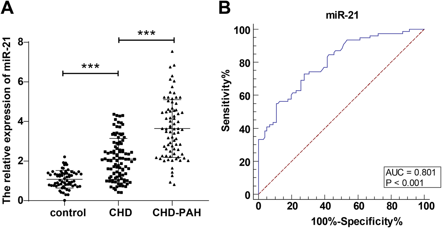 Children with CHD-PAH had higher serum miR-21 levels, which assisted in predicting the occurrence of PAH in children with CHD