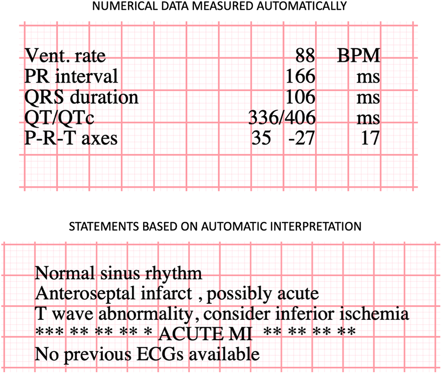 Example of computer interpreted ECG statement by using GE Marquette 12SL data.