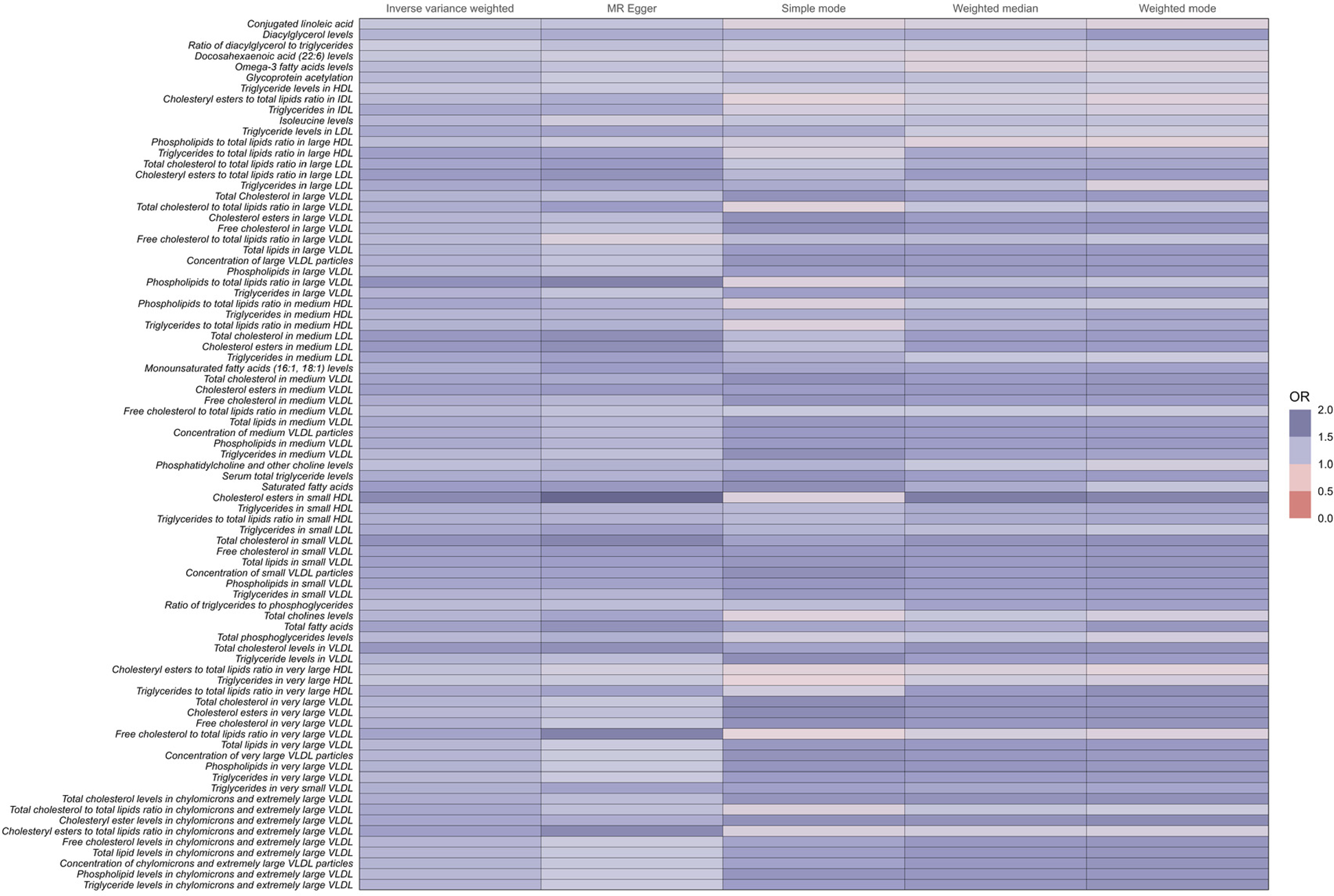 Full results of five Mendelian randomized OR values for 81metabolites associated with an increased risk of coronary atherosclerosis.