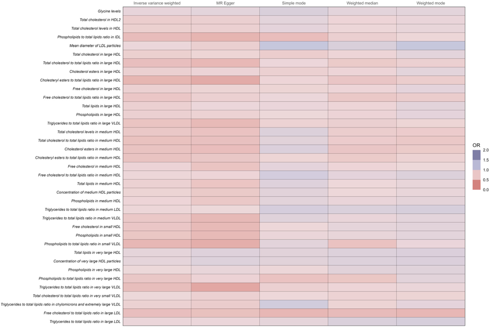 Full results of five Mendelian randomized analyses of OR values for 37 metabolites that reduce the risk of coronary atherosclerosis.