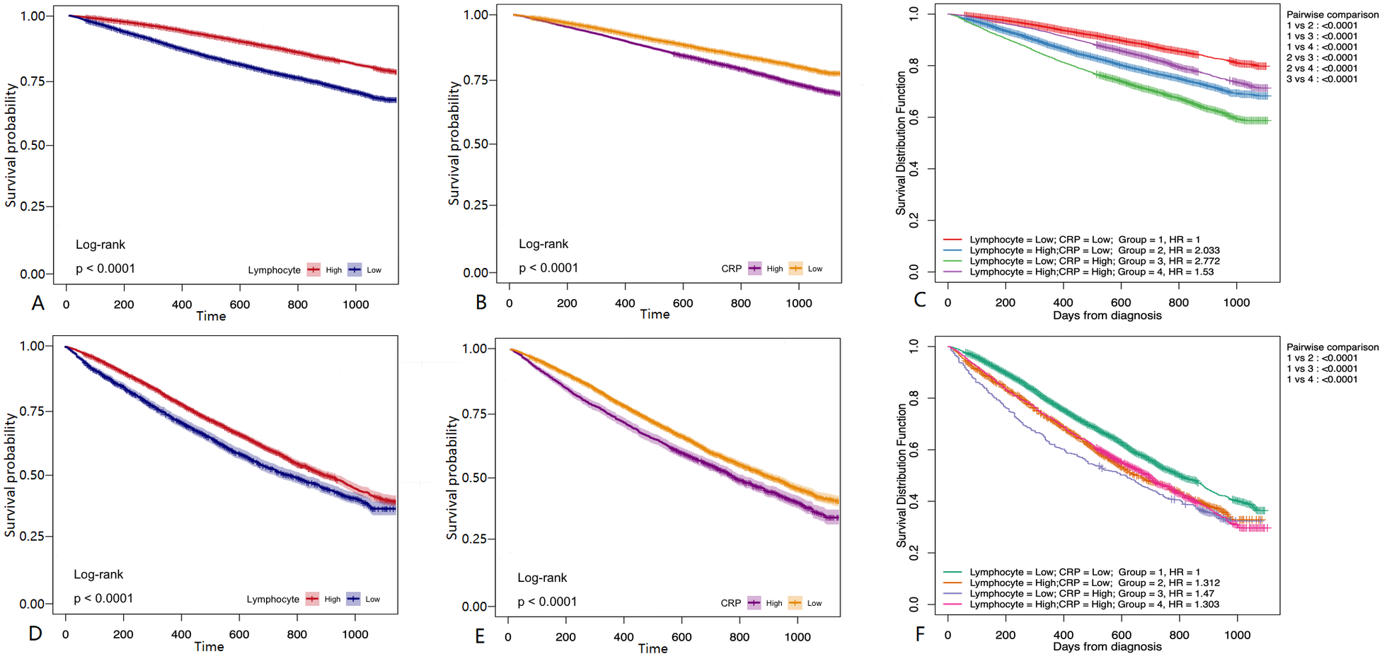 The inverse variance weight (IVW) analysis showed that basophil count (OR 0.92, 95% CI: 0.84–1.00, P = 0.048), CRP levels (OR 0.87, 95% CI: 0.73–1.00, P = 0.040), and lymphocyte count (OR 1.10, 95% CI: 1.04–1.16, P = 0.001) are significant risk factors for CAD. Using LASSO regression, logistic regression, and RF analysis, both CRP and lymphocyte counts were consistently identified as risk factors for CAD, prior to and following PSM. The ROC curve analysis indicated that the combination of lymphocyte and CRP levels after PSM achieves a higher diagnostic value (0.85). Survival analysis revealed that high lymphocyte counts and low CRP levels are associated with a decreased risk of Major Adverse Cardiovascular Events (MACE) (P < 0.001). Conversely, a higher CRP level combined with lymphocyte counts correlates with a poorer prognosis.