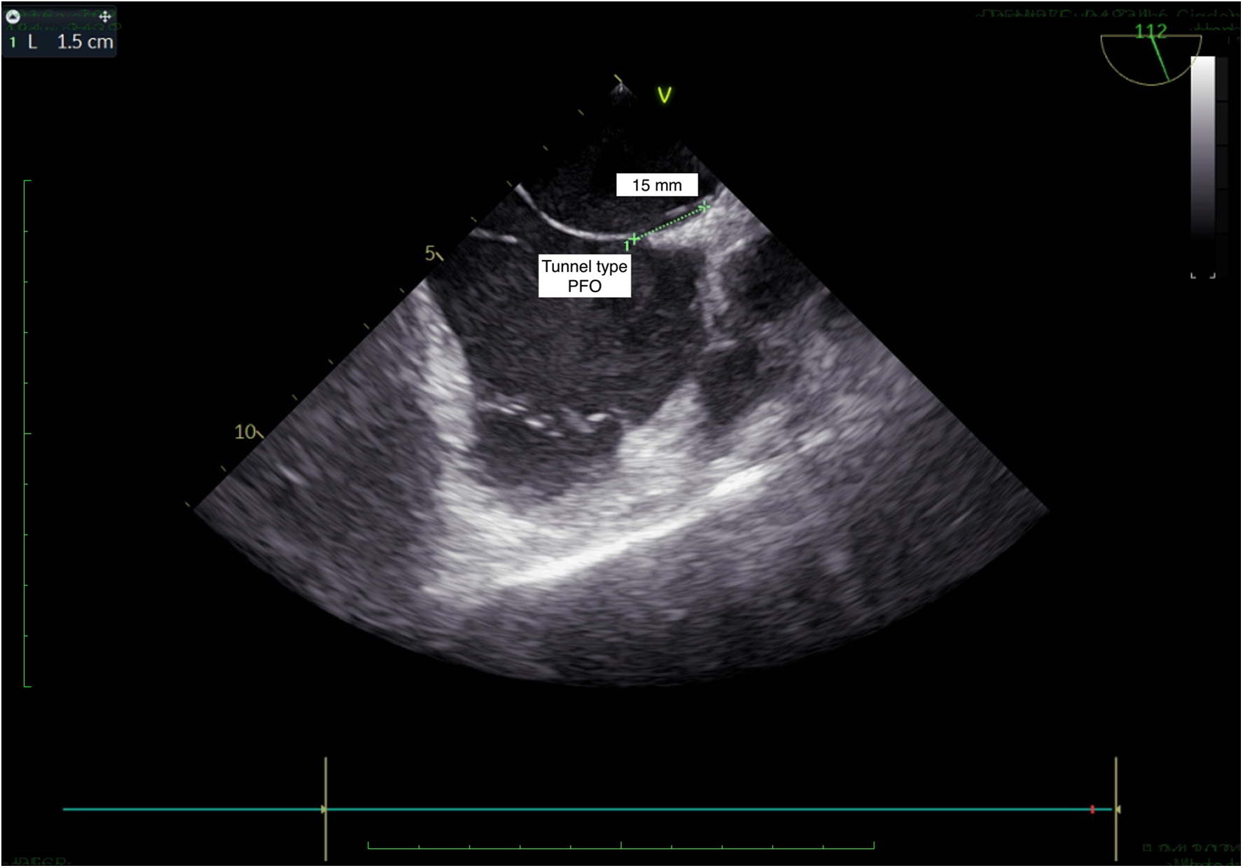 First, all the patients underwent TTE to evaluate their interatrial septum and other cardiac functions. TEE was performed for all the patients before the procedure to detect the shape of PFO, tunnel length, the presence of a left-to-right shunt, and any accompanying atrial septal defect (ASD) or other congenital defects.