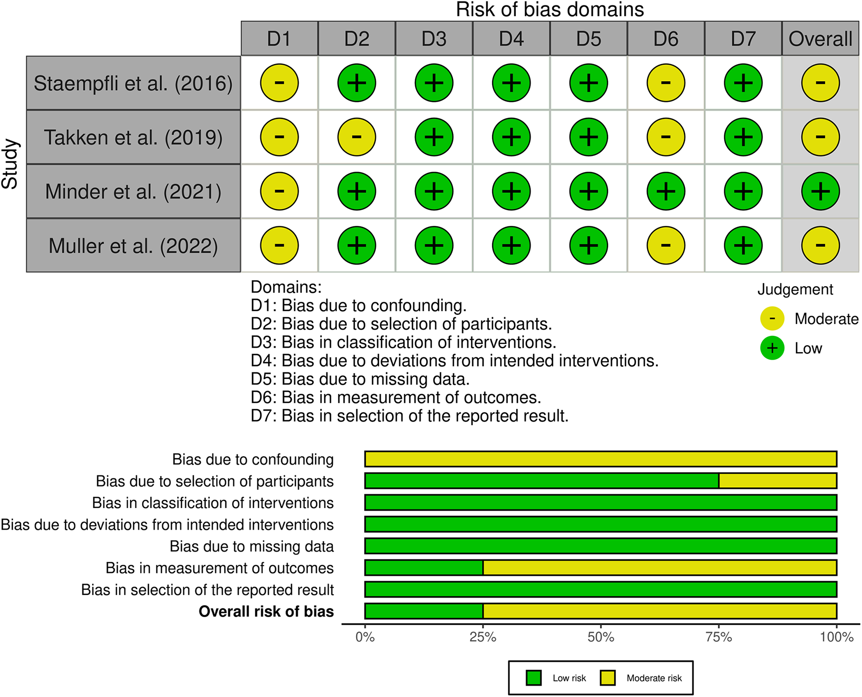 Two investigators (FD and NB) performed the risk of bias and quality assessments; any disagreement was resolved through discussion. The Risk of Bias In Non-randomized Studies of Interventions (ROBINS-I) tool was used to analyze the risk of bias across seven domains. The studies were classified as “low,” “moderate,” “serious,” or “critical” risk of bias (14). To evaluate the quality of the included studies, the Newcastle–Ottawa Scale for case–control studies was used. Good quality studies are defined as those with three or four stars in the selection domain, one or two stars in the comparability domain, and two or three stars in the outcome/exposure domain (15).