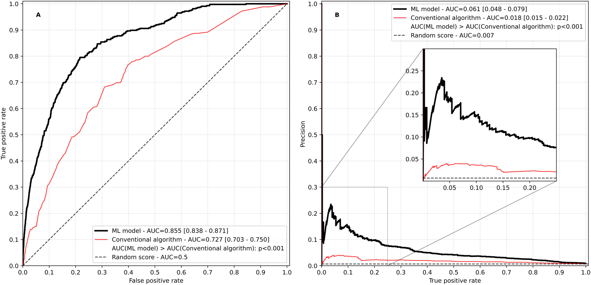 Boyd K Eng KH Page CD . Area under the precision-recall curve: point estimates and confidence intervals. In: BlockeelHKerstingKNijssenSŽeleznýF, editors. Machine Learning and Knowledge Discovery in Databases. Berlin Heidelberg: Springer (2013), p. 451–66. Available online at: https://link.springer.com/chapter/10.1007/978-3-642-40994-3_29 (Accessed December 12, 2023).