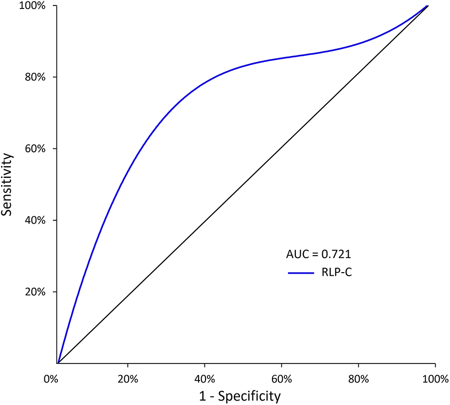 The predictive values of RLP-C level for predicting the risk of NTLs progression. RLP-C, Remnant lipoprotein particle cholesterol.