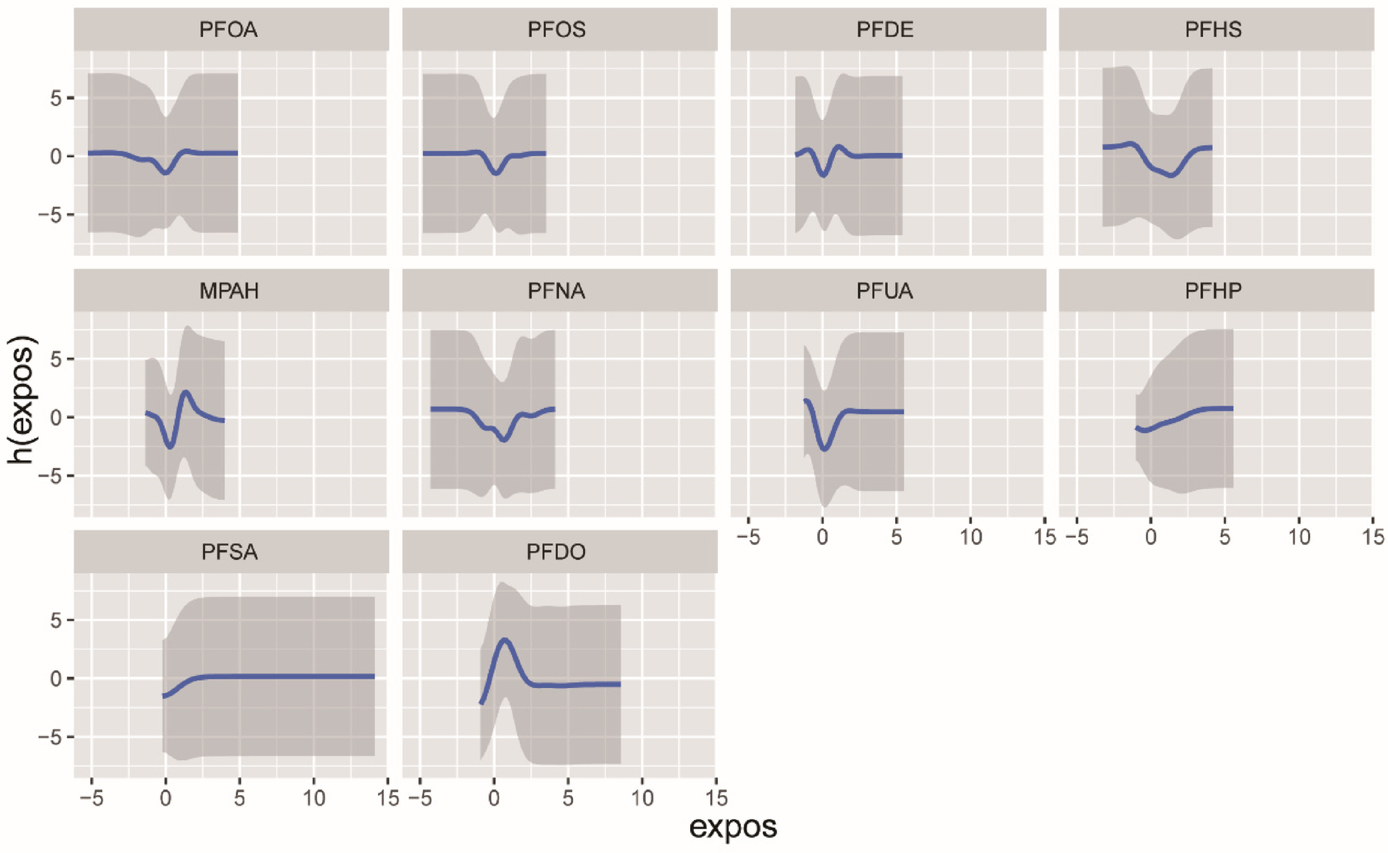 Considering the common mixed exposure scenarios in daily life, evaluating combined PFC exposure was crucial. The Bayesian kernel machine regression (BKMR) model was used to evaluate the effect of mixed PFC exposure on CVD. The analytical method calculated the potential continuous outcome change of CVD with PFCs exposure ranging from the 25th to the 75th percentile and estimated the exposure-response function between individual PFCs exposure and CVD. The weighted quantile sum (WQS) model was utilized to assess the impact of combined exposure to PFCs and evaluate the relative contribution of each chemical.