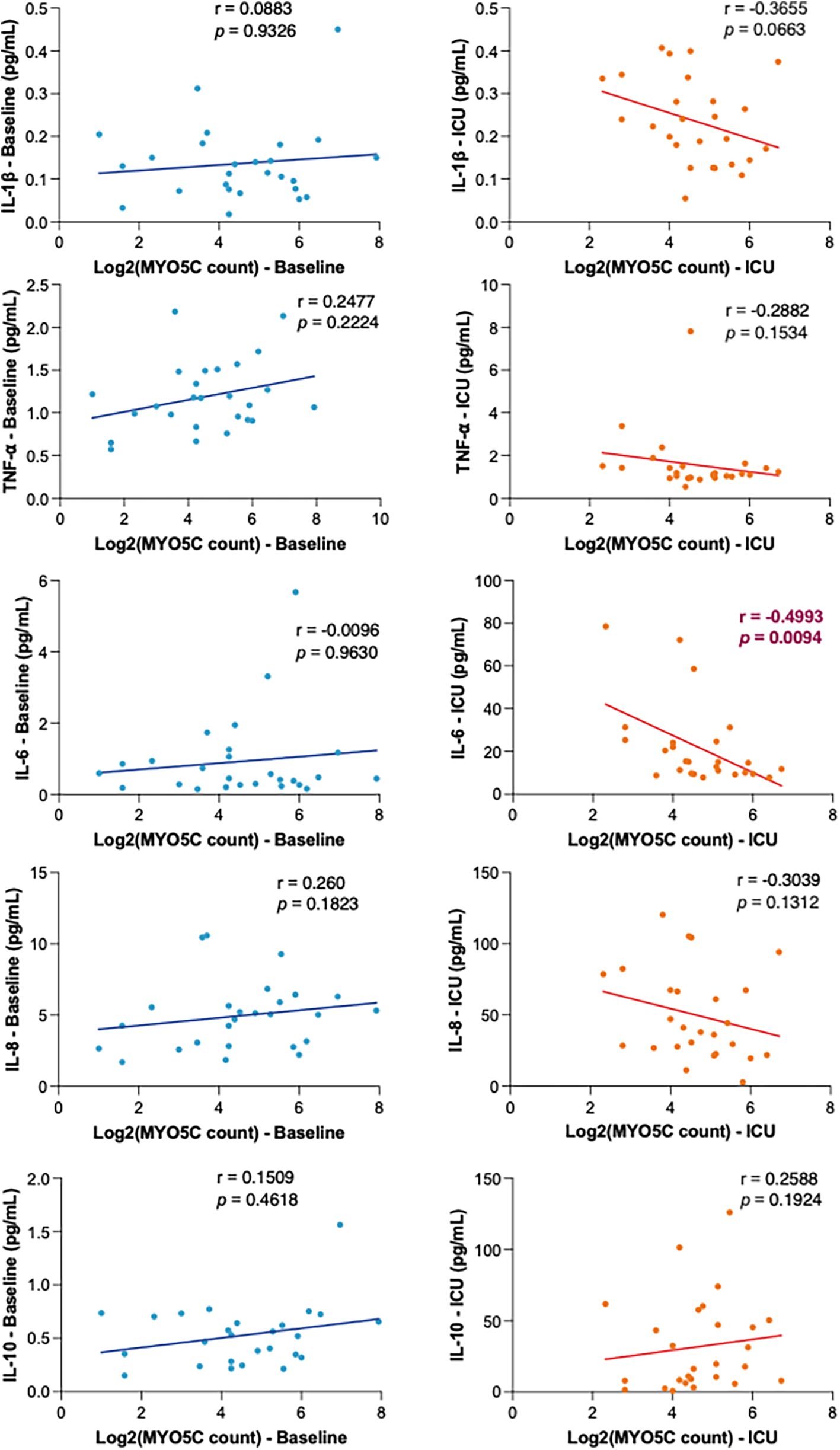 Supplementary Table S2Logic regression analysis of myo5c expression at ICU admission and clinical variables.