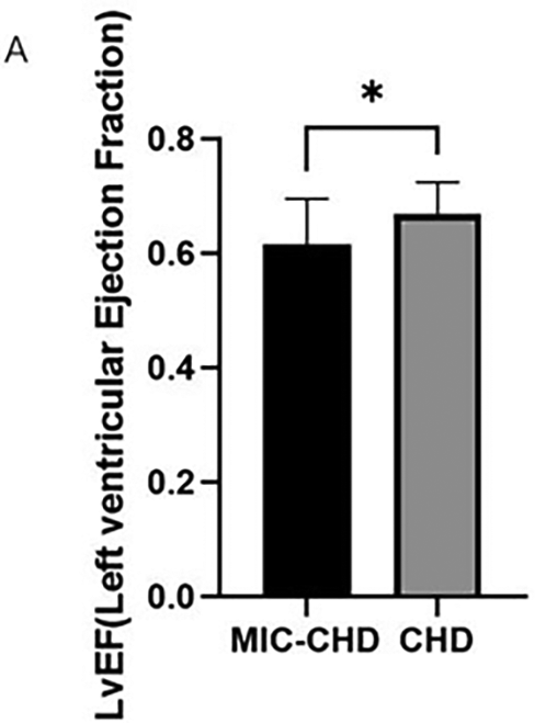 Comparison of LVEF between the MIC-CHD and CHD groups.