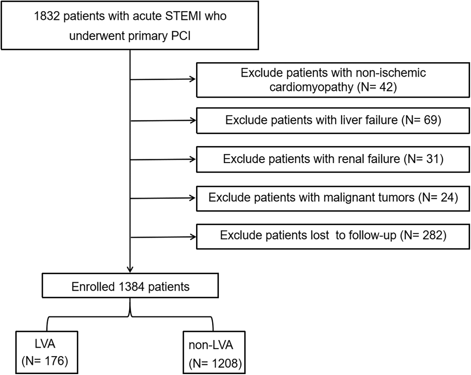Flow diagram of the study participants. STEMI, acute ST-segment elevation myocardial infarction; PCI, percutaneous coronary intervention; LVA, left ventricular aneurysm.