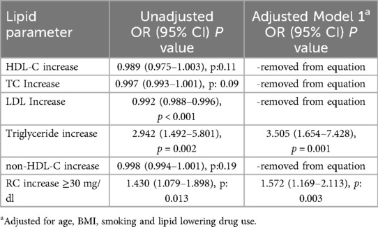 Multivariate logistic regression analysis of lipid profile and prevalence of HTN