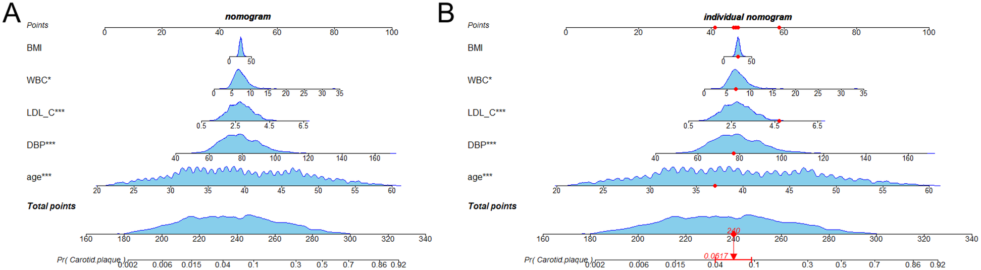 Carotid plaque represents an independent risk factor for cardiovascular disease and a significant threat to human health. The aim of the study is to develop an accurate and interpretable predictive model for early detection the occurrence of carotid plaque.