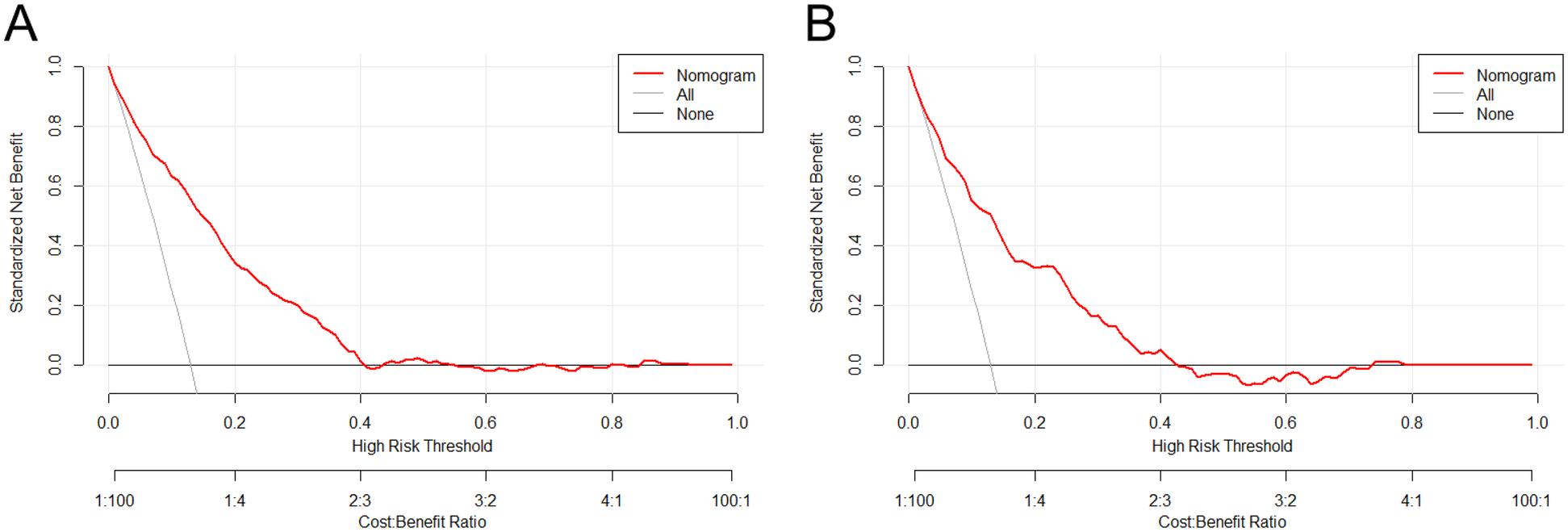 The statistical analyses in this study were conducted using IBM SPSS 26.0. The data, which exhibited a normal distribution, were expressed as “`x ± s”, and t-tests were employed for comparisons between groups. The data, which did not exhibit a normal distribution, were expressed as “[M (P25, P75)]”, and rank-sum tests were employed for comparisons between groups. The data for categorical variables were expressed as percentages, and the Pearson χ2 test was employed for comparisons between groups. The level of the test was set at α = 0.05 in this paper. R4.2.3 was employed for the purpose of feature screening, model construction, the generation of nomograms, and the assessment of the effects.