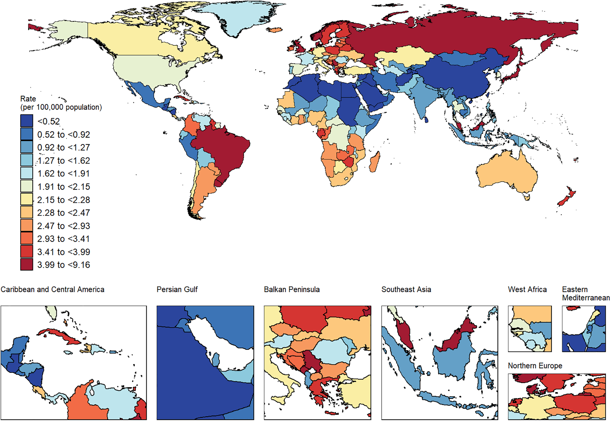 | Global | 88,352.86 (83,090.19–93,491.94) | 2.54 (2.35–2.69) | 153,927.20 (138,413.36–165,738.65) | 1.86 (1.67–2.00) | −0.81(−0.95 to −0.66) | −0.99(−1.07 to −0.90) |